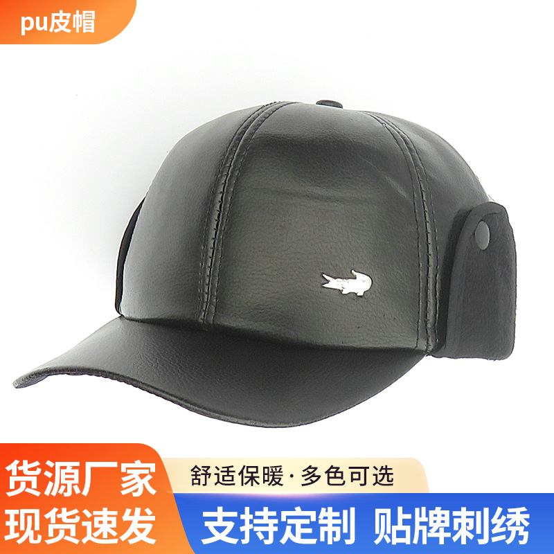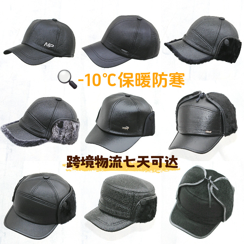 メーカー在庫卸売 メンズカジュアルPUレザーハット 中高年向け耳当て付き保温キャップ シンプル野球帽