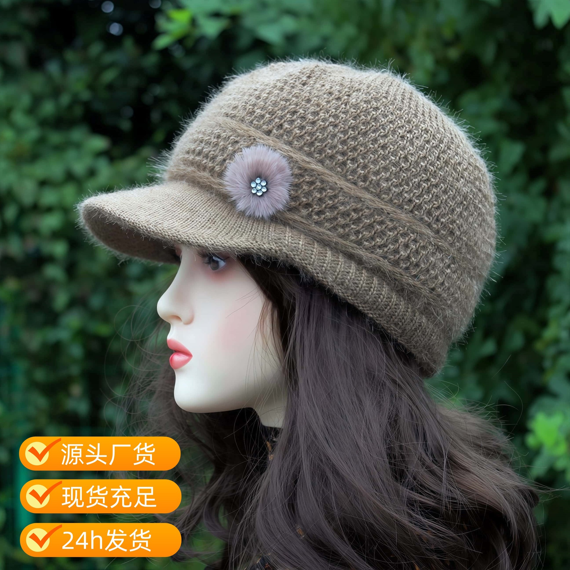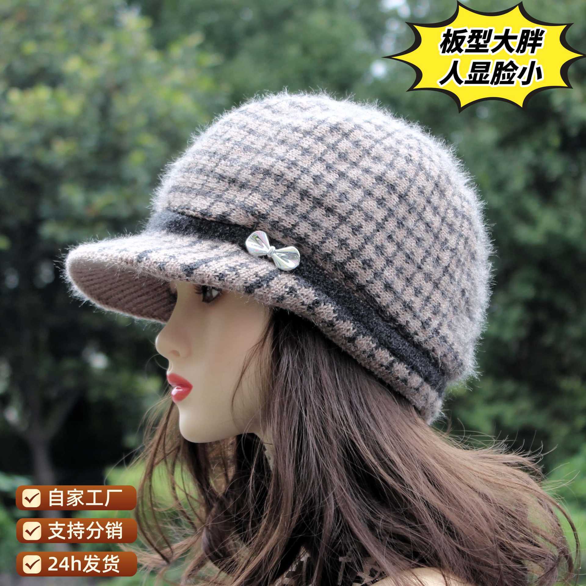 中老年帽子女兔毛保暖针织鸭舌帽老奶奶休闲百搭防寒老太太毛线帽