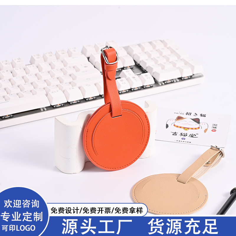 現物クロスボーダーluggage tagカスタム円形延長ストラップ金属固定PU革荷物札