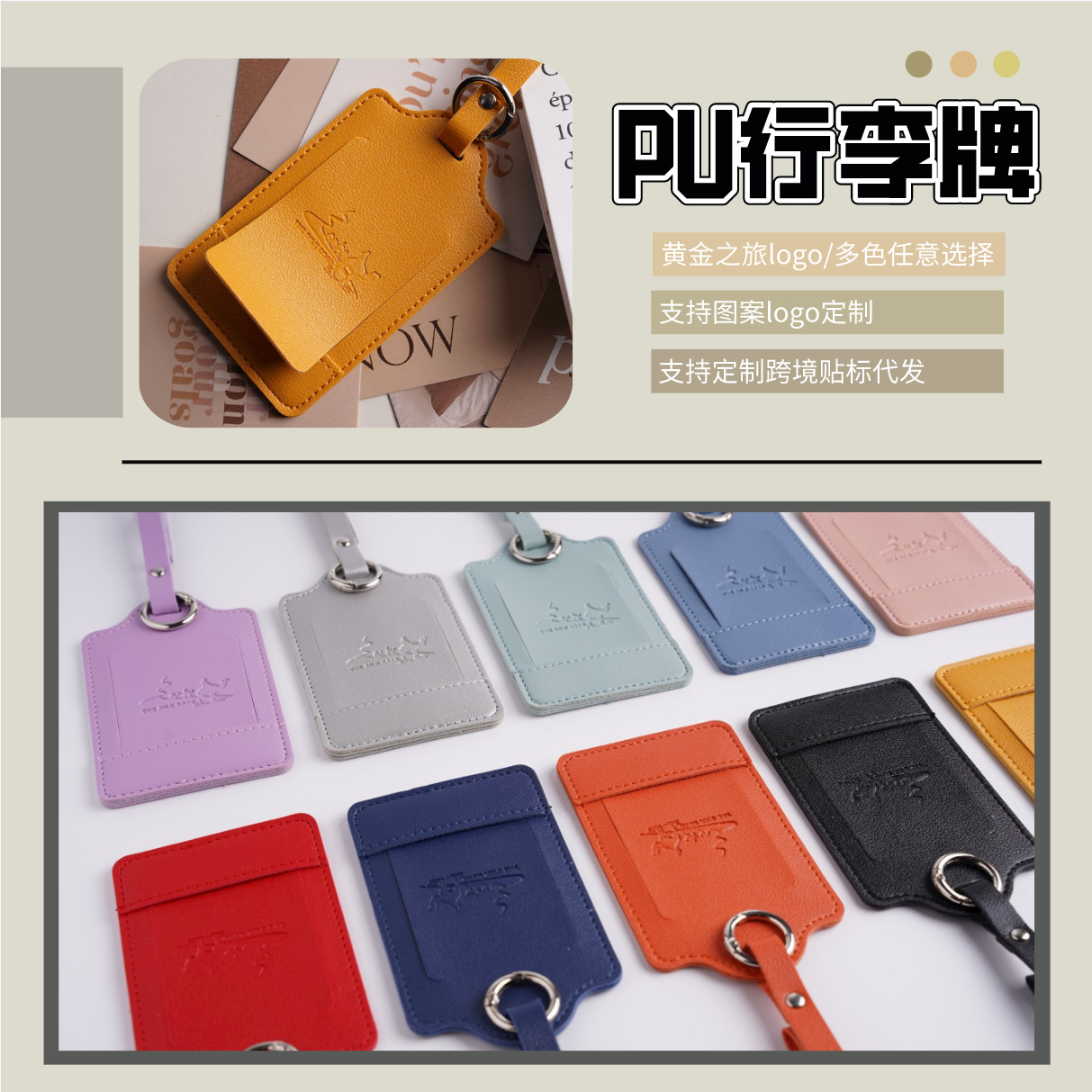 クロスボーダーバ�ードタグ pu レザーマルチカラースポットスーツケースフリップタグタグ荷物タグカスタムロゴ