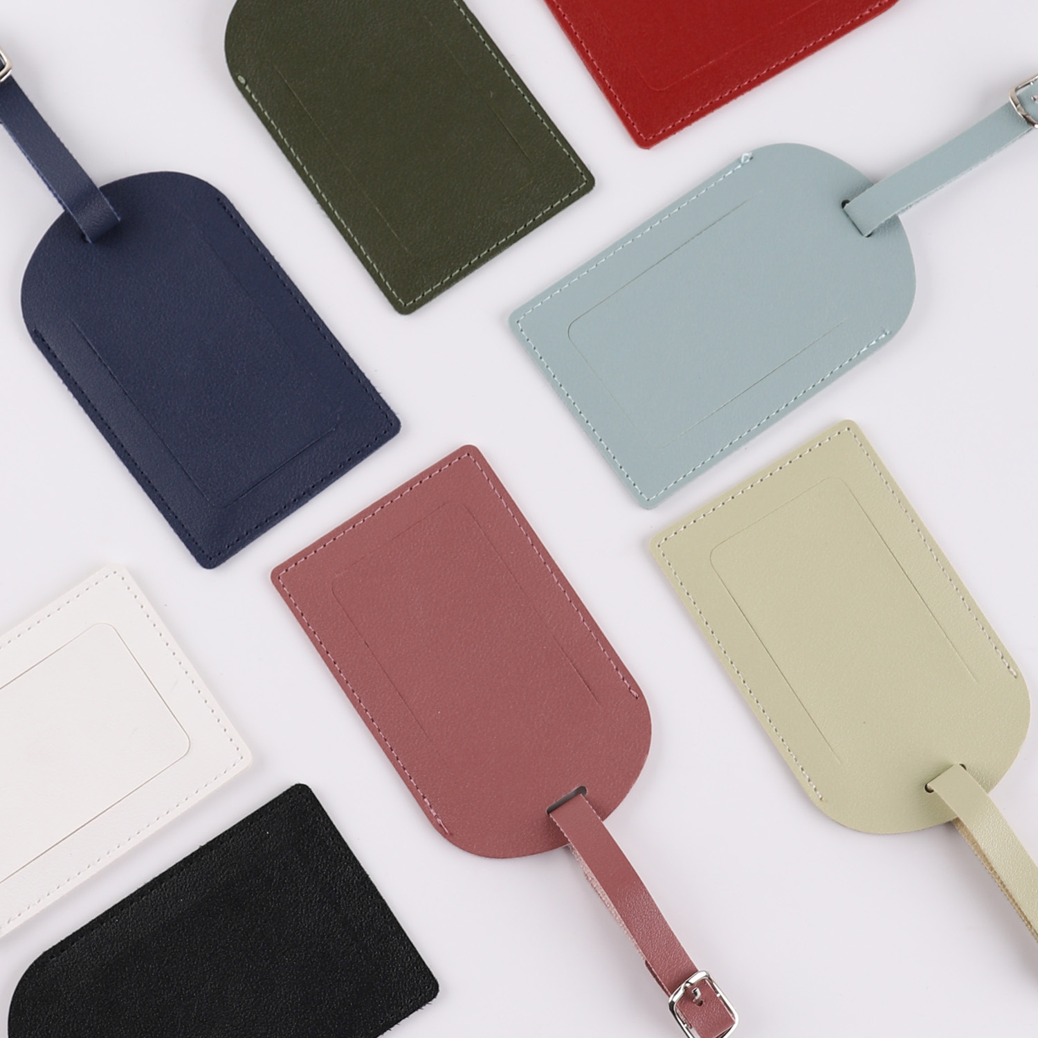 热卖PU皮革行李牌开窗式多色带挂绳姓名牌行李箱标签卡托运登机牌
