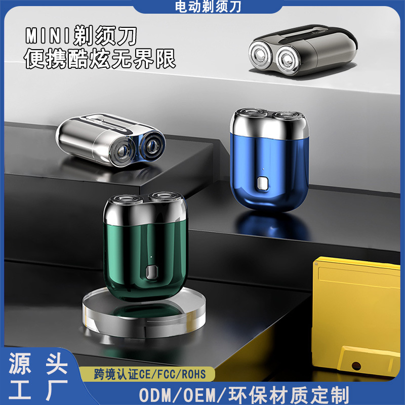 クロスボーダーミニ電気シェーバー メンズ ダブルヘッド マグネット式カッターヘッド シェーバー ポータブル 水洗い可能 充電式シェーバー