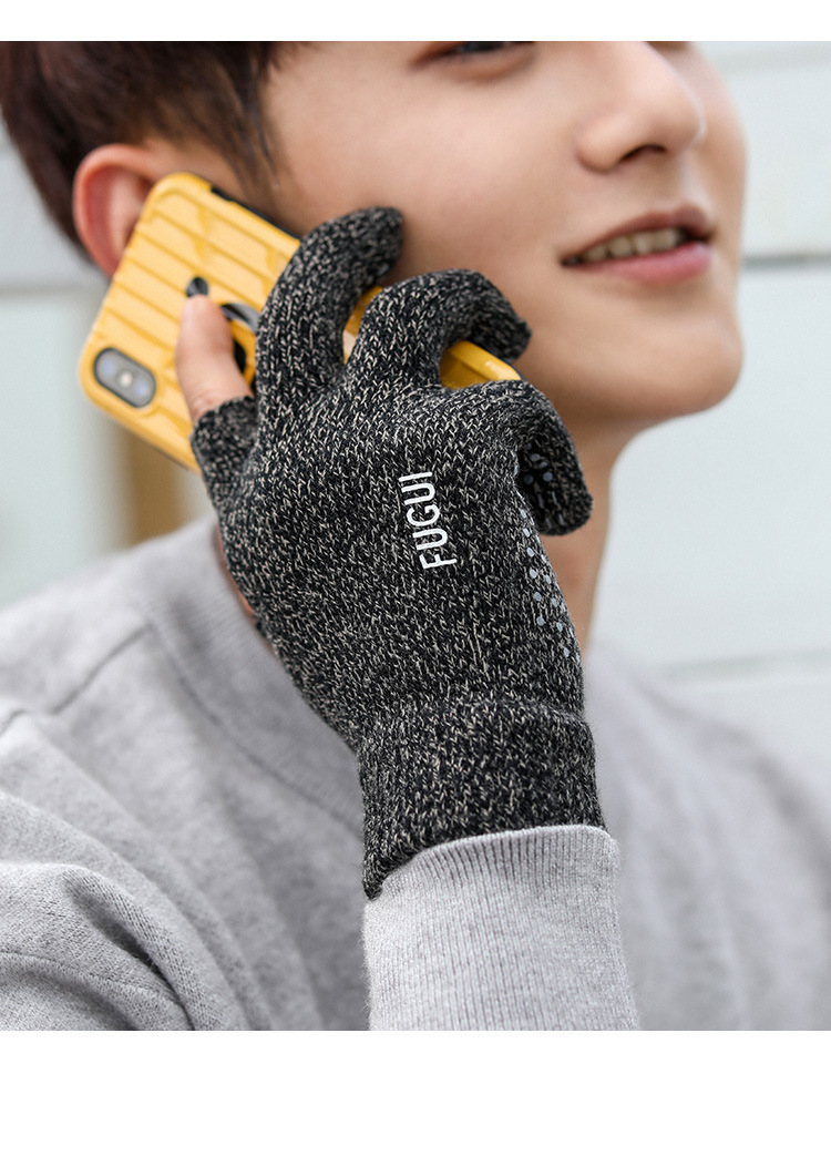 半分の指の男性の手袋の秋冬の露の2本の指の厚い保温のタッチパネルのベルベットの毛糸の防寒の屋外の騎乗のニット