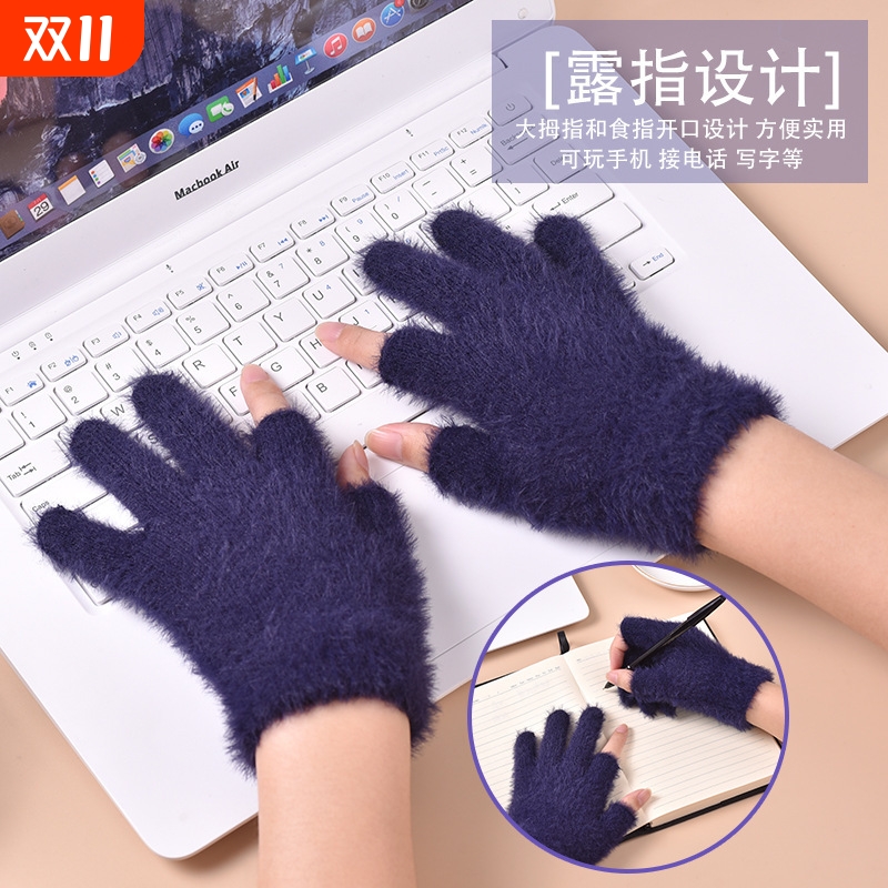 露二指手套男女冬季触屏保暖加厚针织毛线写字办公学生收银半指潮