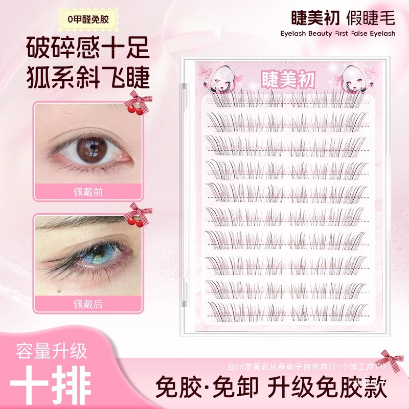 クールでブロークンな感触の接着剤不使用のキツネのつけまつげ、自然なシミュレーション、超極細で柔らかいセグメント化された小さなミルクキツネの自己接着まつげ