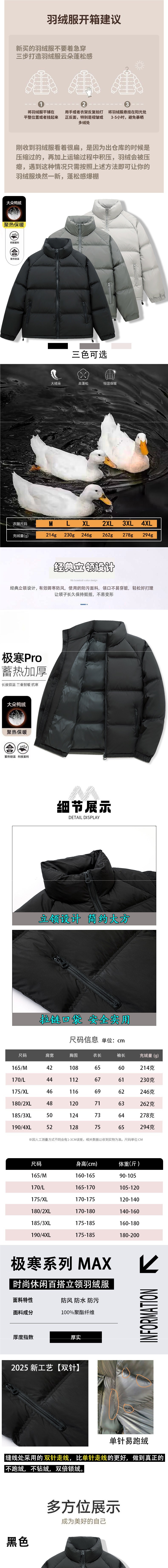 2025纯色男士立领外套90白鸭绒宽松加厚保暖防风抗寒简约羽绒服