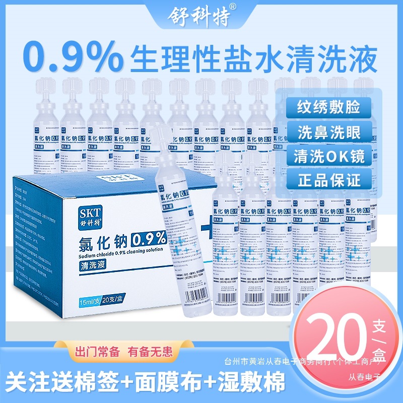 Shukote 0.9 生理食塩水 15ml 湿布洗浄液 鼻洗浄 目洗浄 顔のタトゥー刺繍 ポータブル小型チューブ