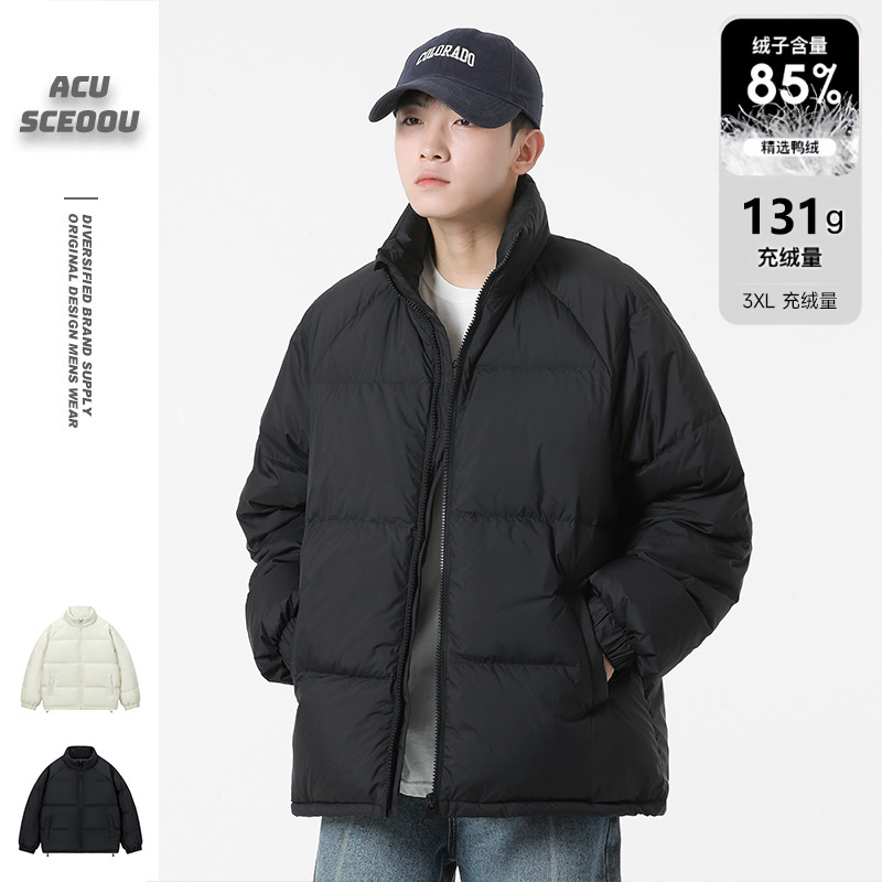 ACU男装|轻薄便携泡芙羽绒服2025冬季保暖厚85绒纯色立领宽松外套