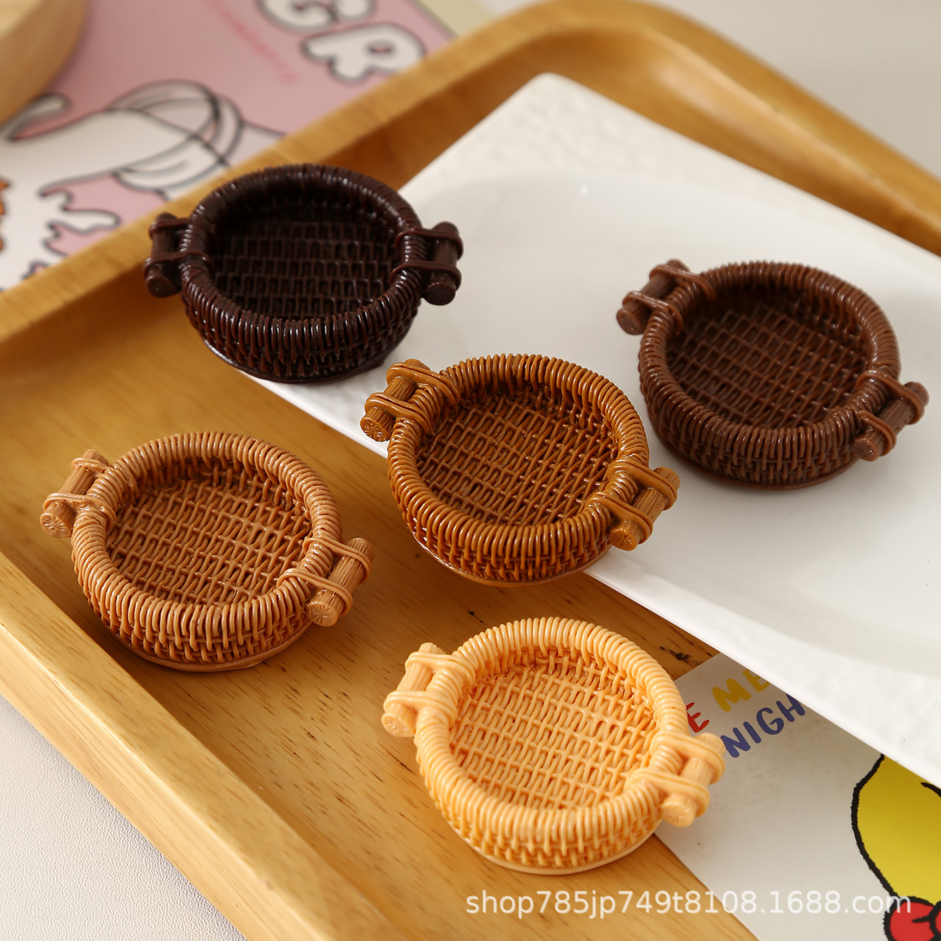 树脂配件仿真原藤编织篮美食甜品收纳篮托盘式批发DIY迷你道具