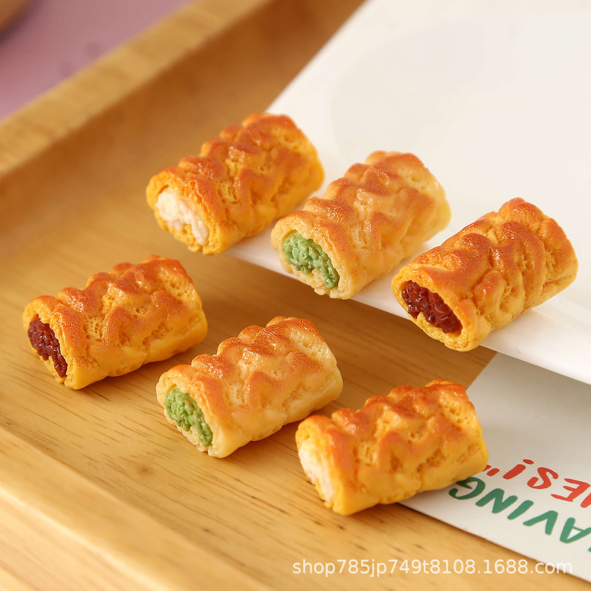 批发DIY树脂配件微缩食玩虎皮蛋糕红豆抹茶奶油夹心钥匙扣洞洞鞋