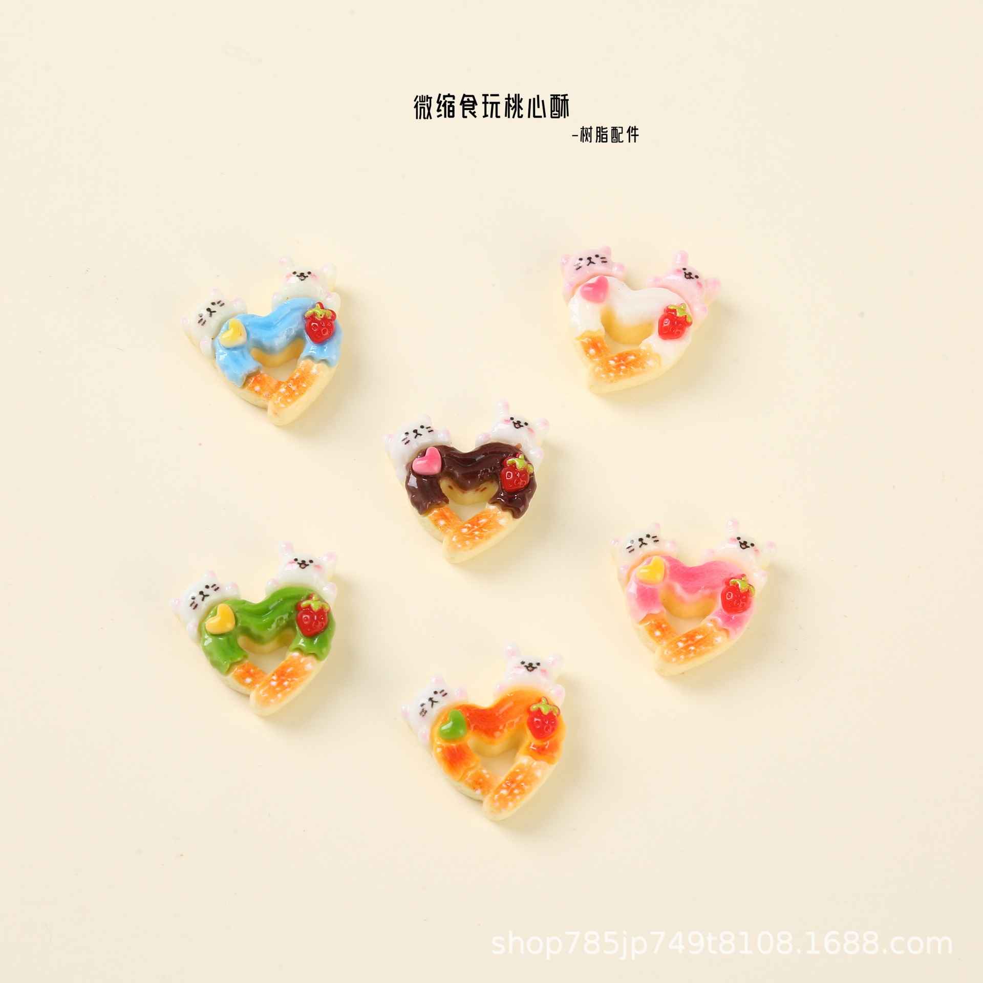 卸売アクセサリー、桃心ケーキミニチュア食品玩具、ツリーフィンガーキーホルダー、クリーム接着剤DIYキーホルダー