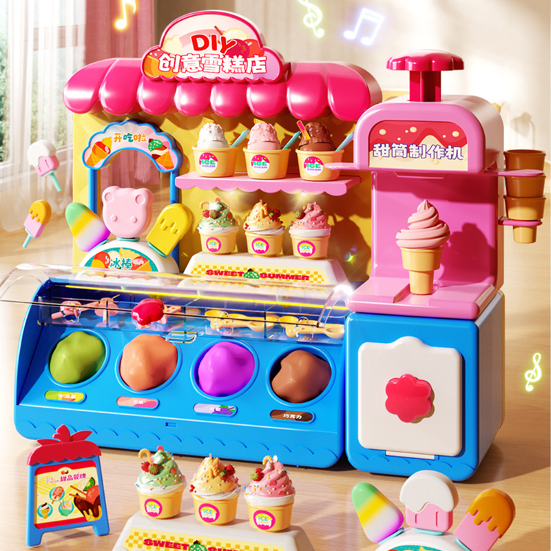 子供用粘土型教育用アイスクリームショップカラー粘土アイスクリームマシンおもちゃ女の子の誕生日プレゼントメーカー卸売