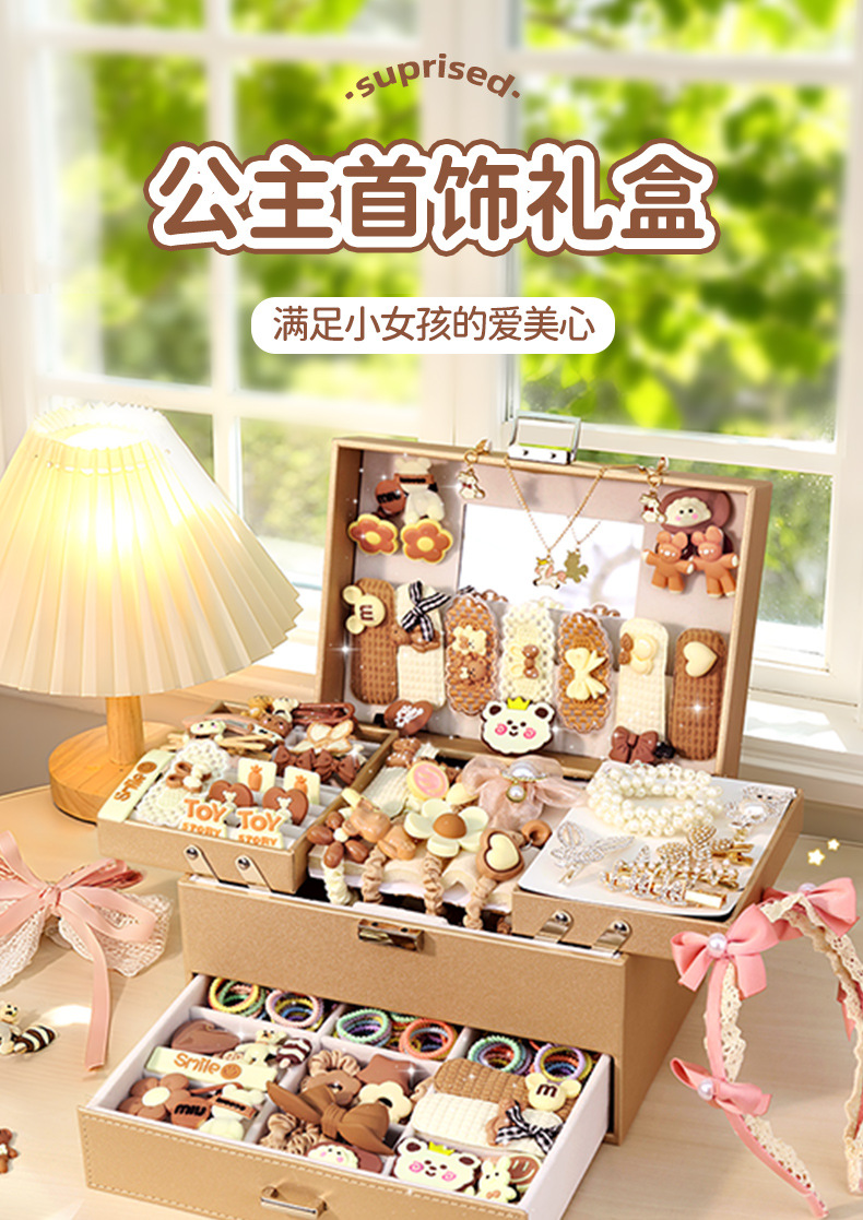 新款高端女童首饰盒发饰小女孩玩具发卡韩版头绳发夹6岁8生日礼物