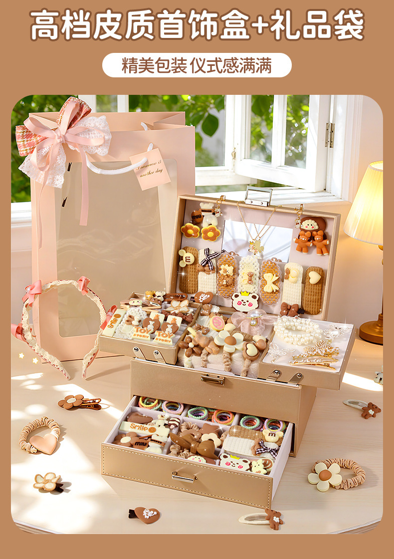 抖音で話題のクリスマスギフト、女の子向けヘアアクセサリーボックス、高級セット、誕生日プレゼント、卸売、発送代行