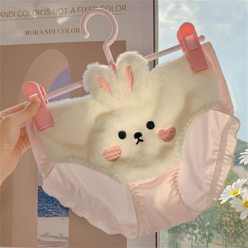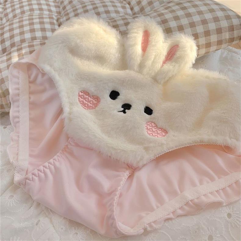 秋冬精美刺绣兔兔毛茸茸甜美少女公主可爱中腰三角女士内裤