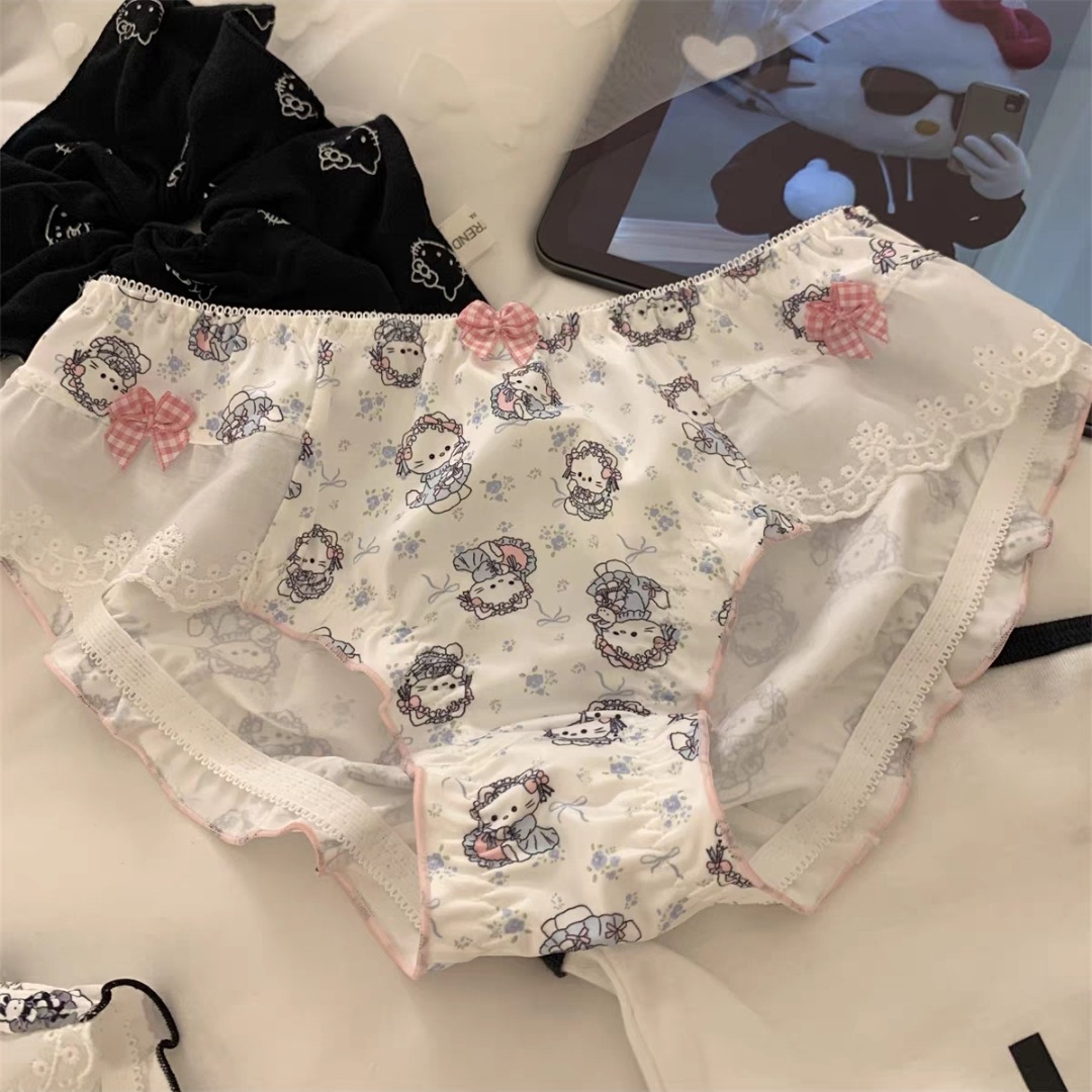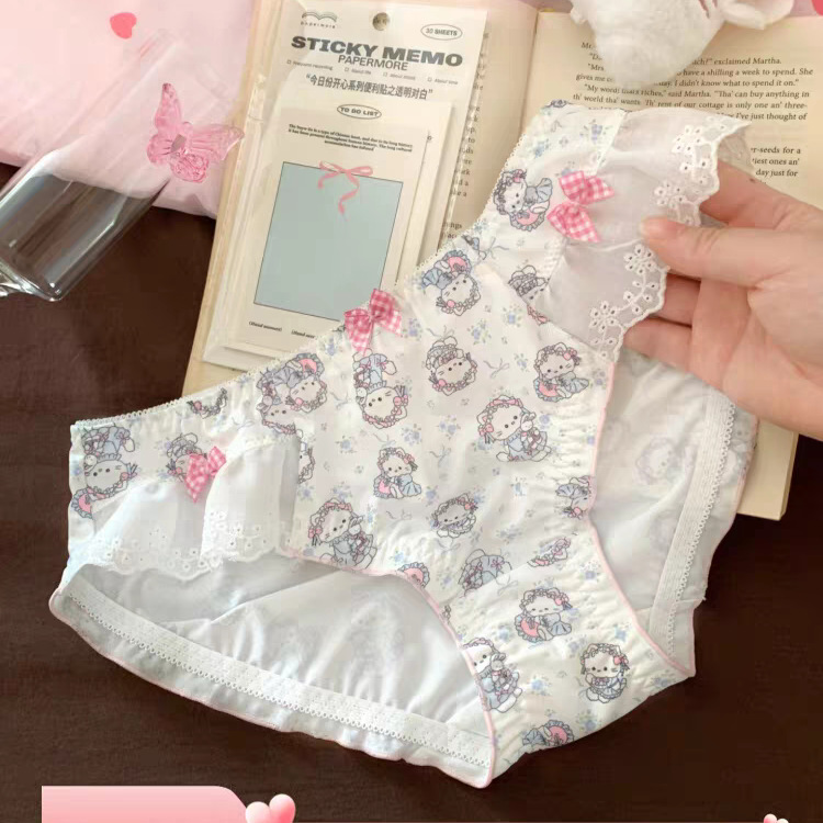 猫咪可爱日系少女内裤纯棉抗菌中腰冰丝蝴蝶结印花甜美学生三角裤