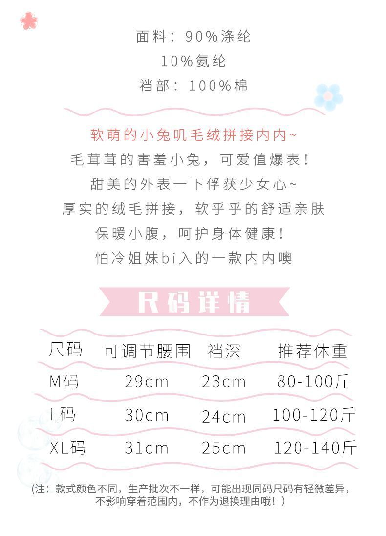 秋冬暖fufu暴击!粉色毛绒绒可爱兔耳朵冬日保暖女士内裤三角裤