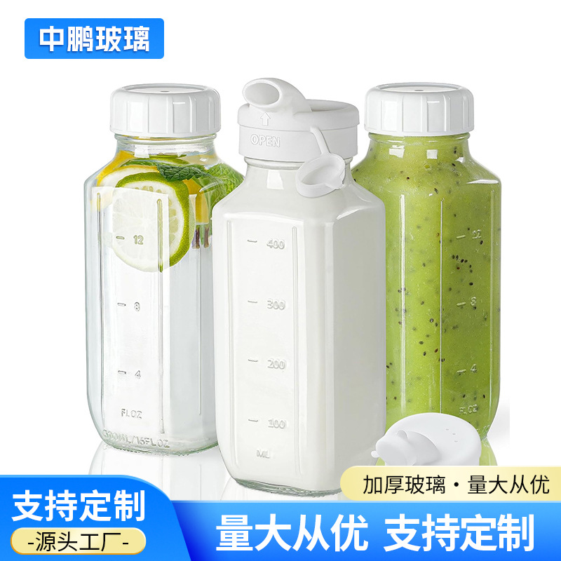 亚马逊500ml带刻度方形玻璃牛奶瓶密封带盖果汁饮料瓶家用酸奶瓶