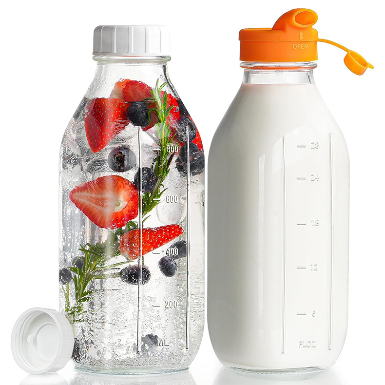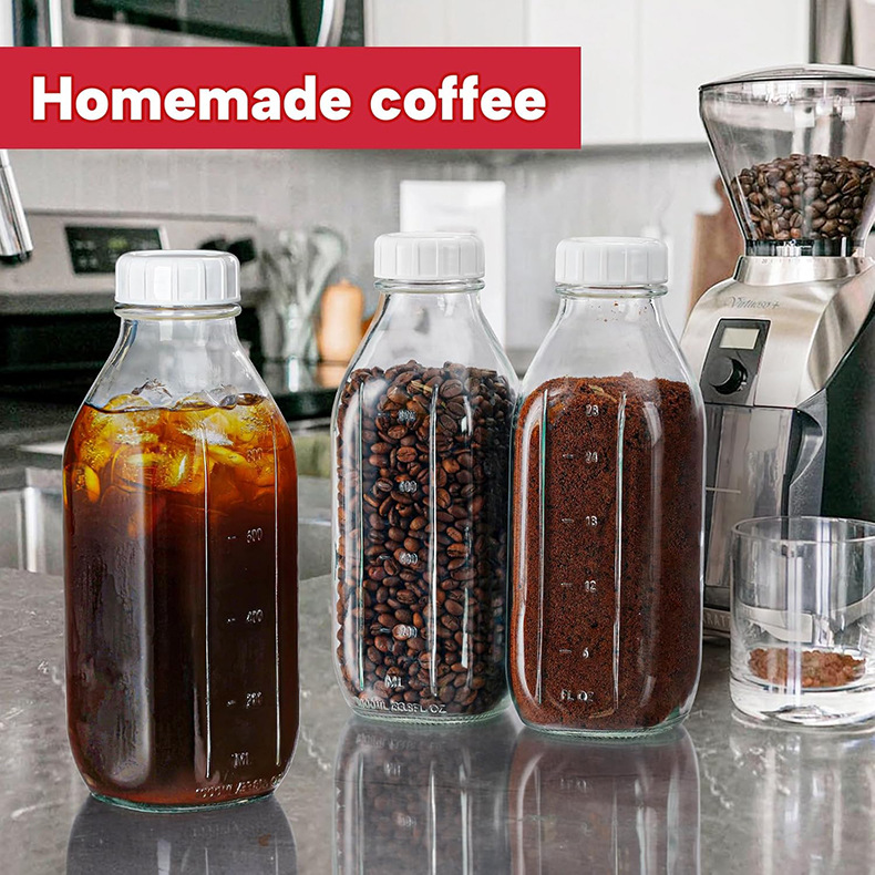玻璃牛奶分装瓶果汁瓶咖啡瓶密封盖带刻度耐高温大容量可重复使用