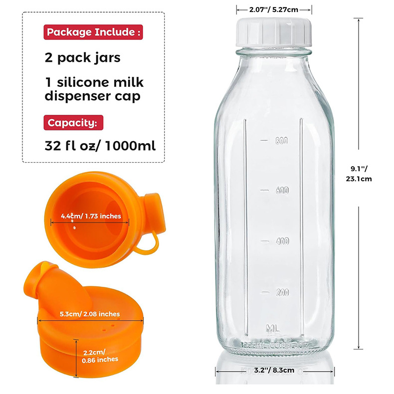 国境を越えた販売専用、64オンス目盛り付き牛乳・コーヒー・スムージー用、ジュース・水出しコーヒー用、密封蓋付き食品グレードガラス瓶