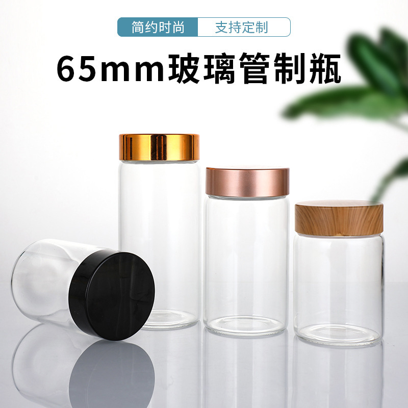65mm保存瓶 高硼珪酸ガラス製ボトル キッチン雑穀分詰め瓶 文玩収納瓶 竹蓋付き茶葉密封瓶