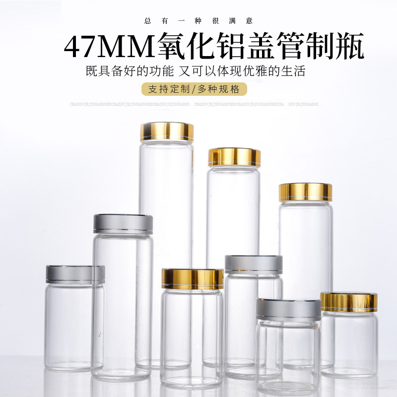 47MM酸化アルミニウムキャップパイプボトル卸売ガラス密封缶サンプルボトル虫草ボトル分注ボトル小さな薬ボトル