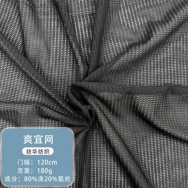 爽宜网涤氨四面弹面料布运动服箱包透气氨纶网眼布速干网布布料