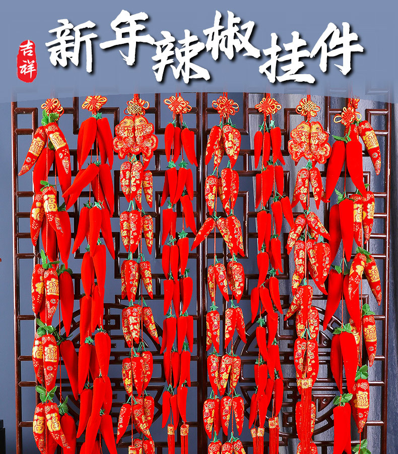 新年のペンダントは赤唐辛子のペンダントを飾ります。