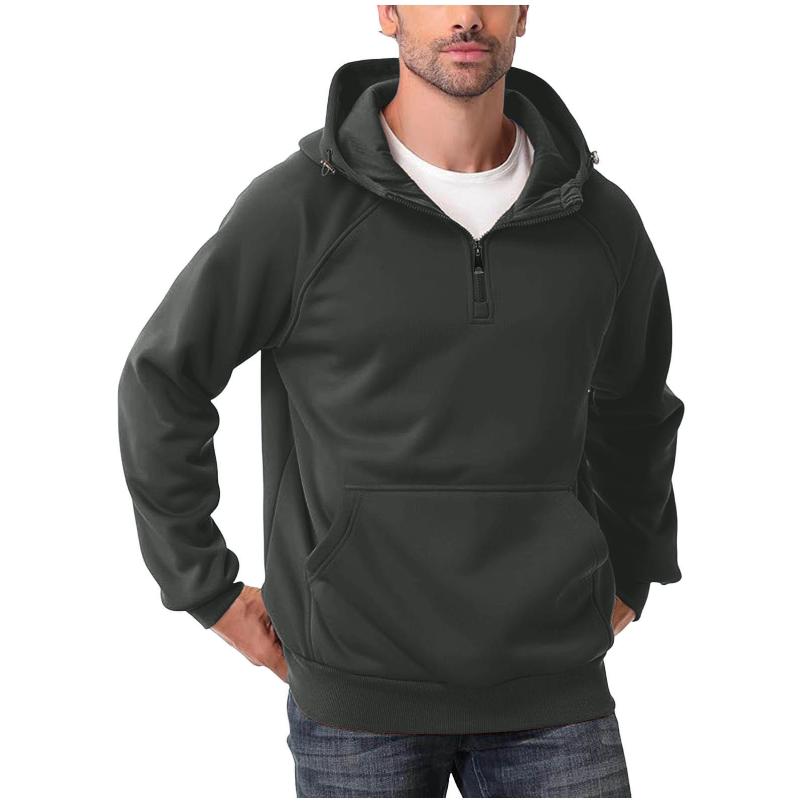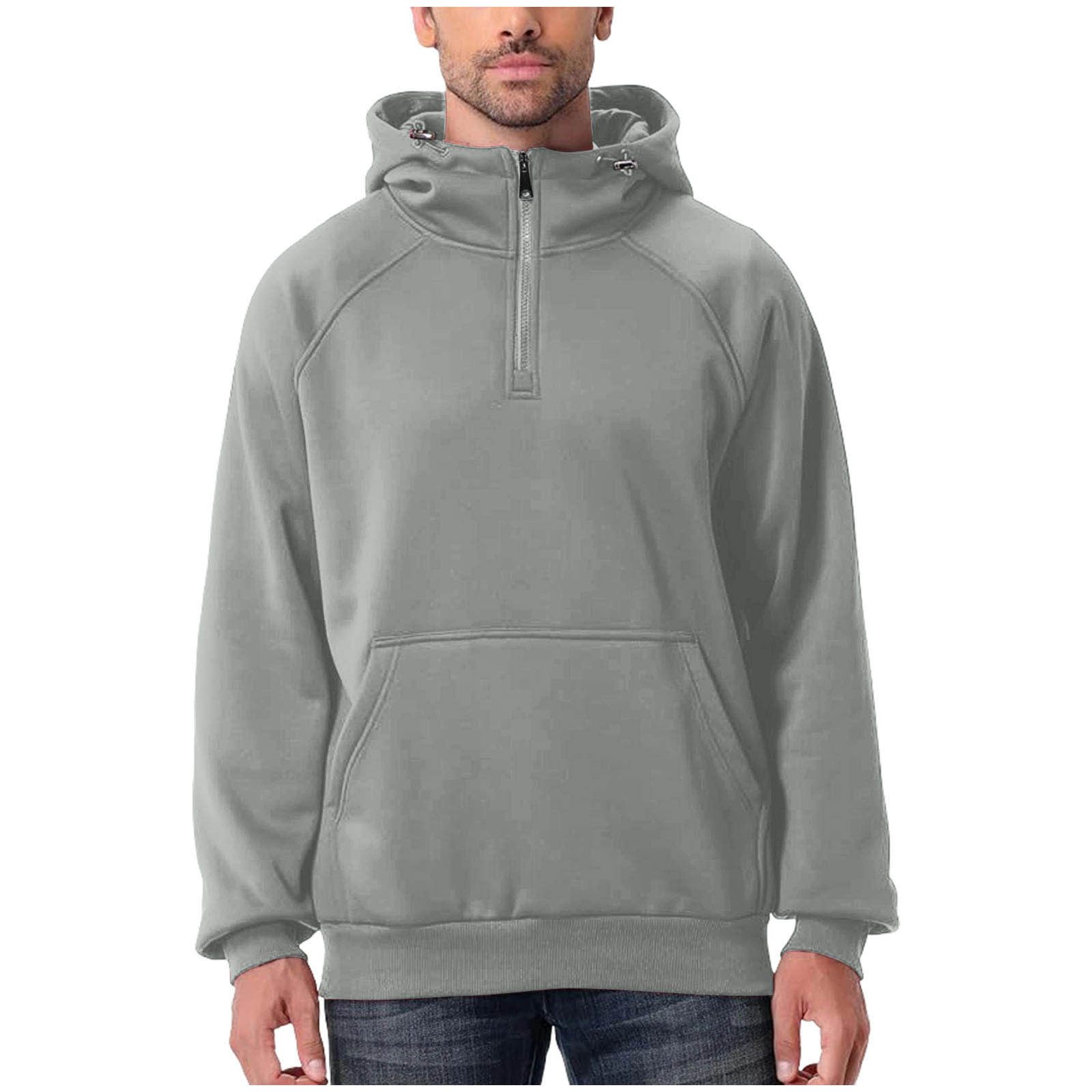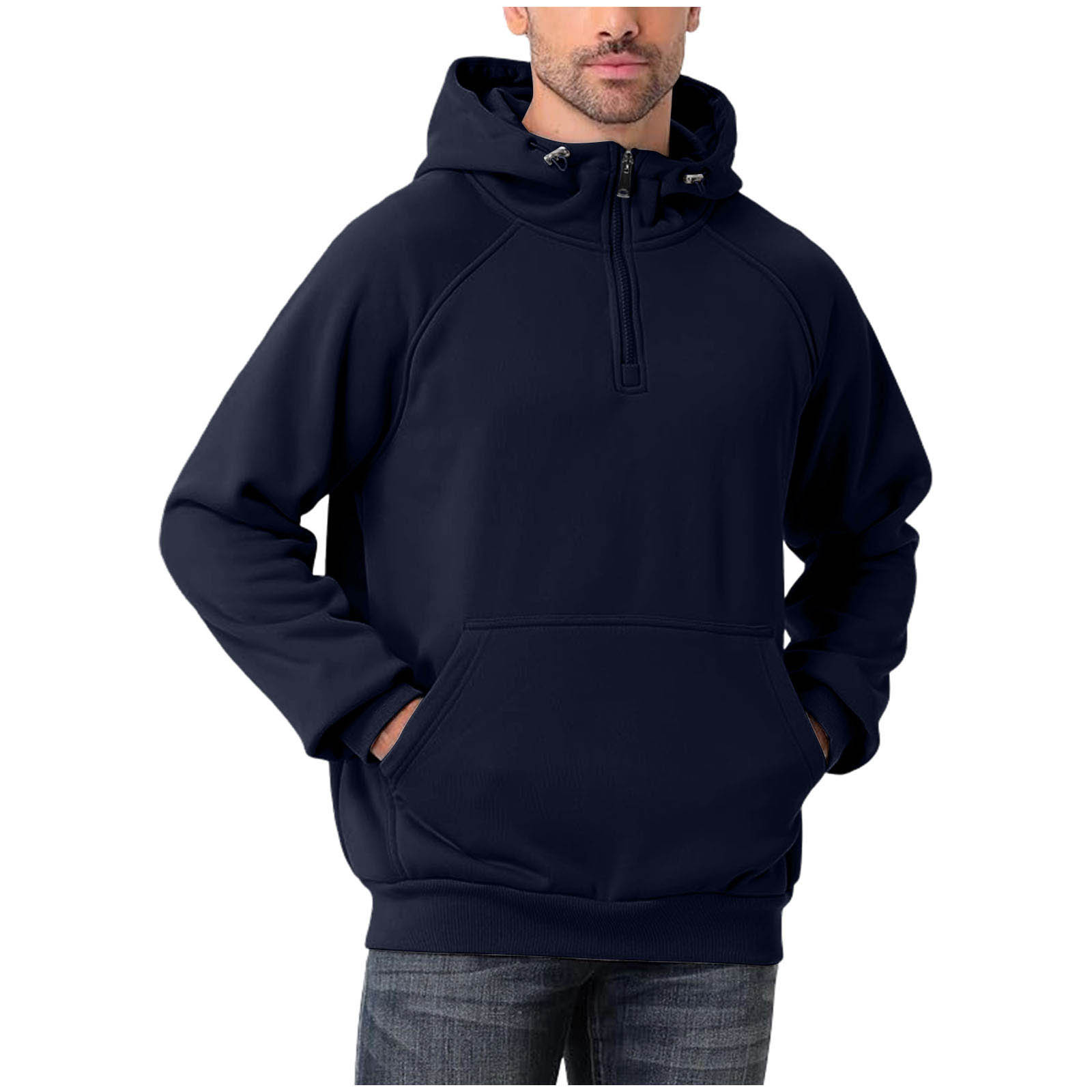 多色跨境重磅半拉链卫衣男秋季潮牌纯色连帽衫百搭跨