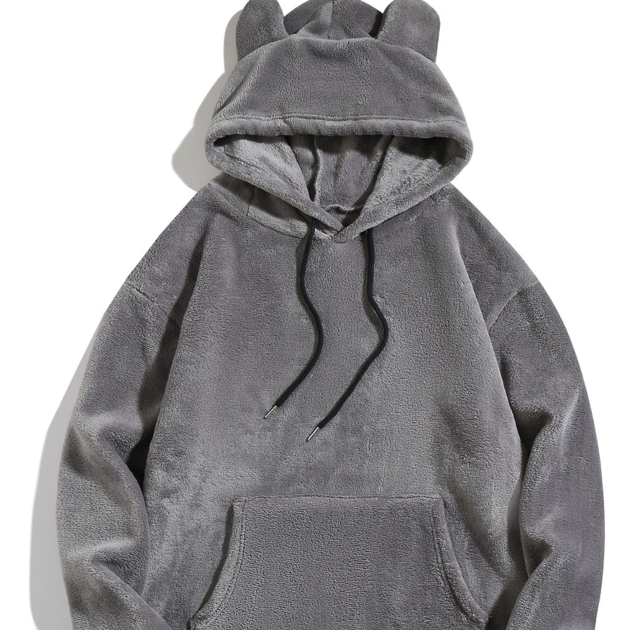 2024秋冬のパーカー男性用ファッション純色フード付きコーラルフリース運動レジャーとベルベットコートのパーカー男性