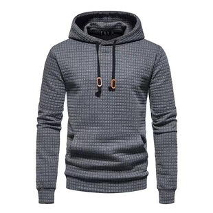 2024秋冬のパーカー男性用ファッション純色シンプルな帽子付き方眼スポーツカジュアル長袖パーカー男性