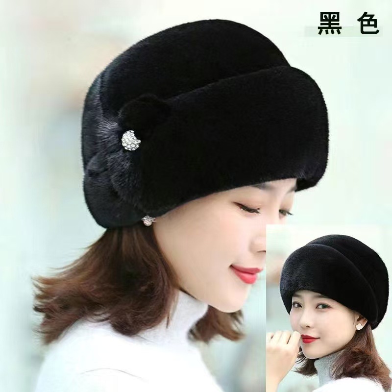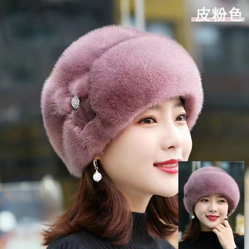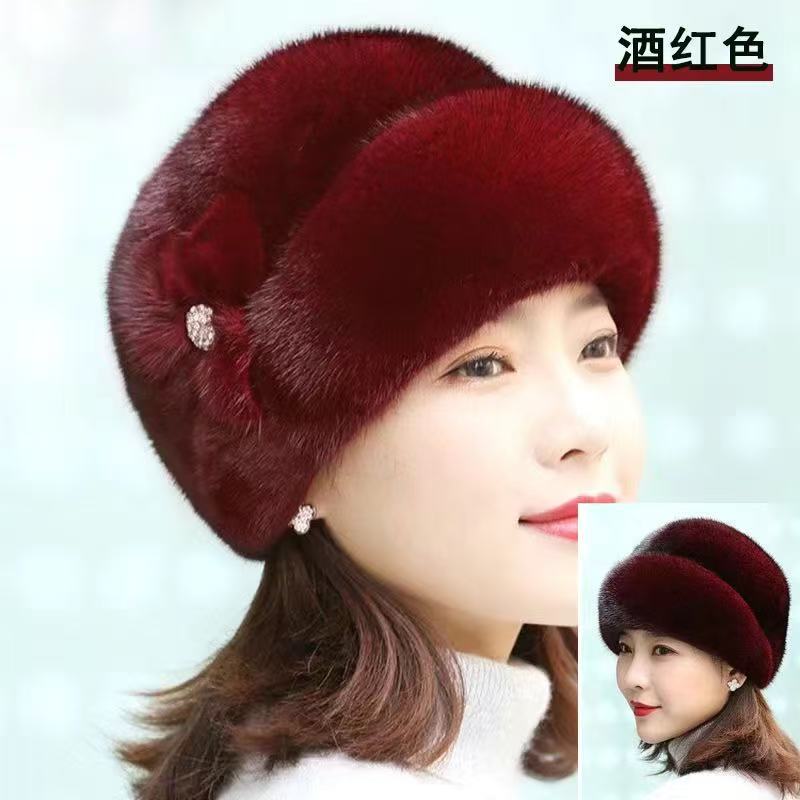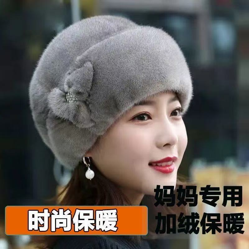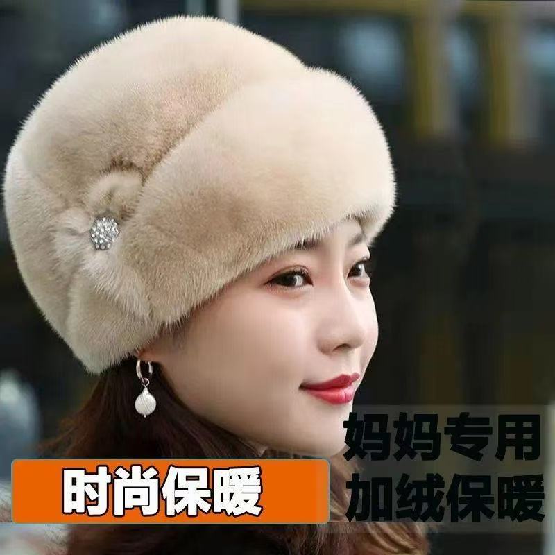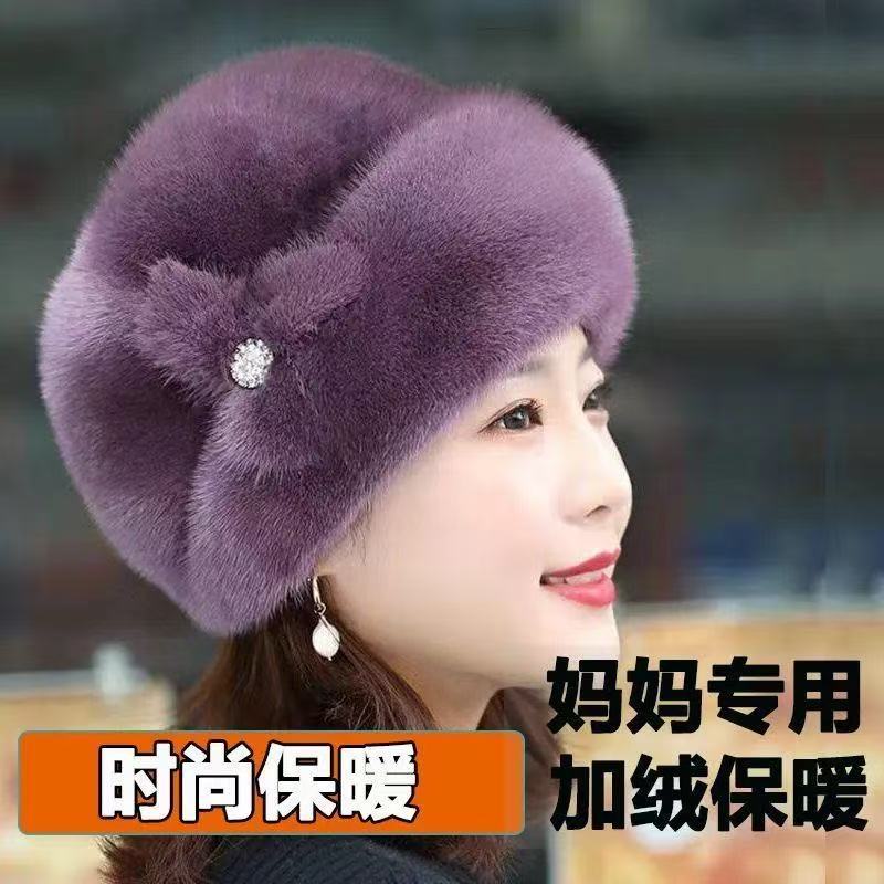 妈妈帽子女秋冬洋气中老年人仿水貂毛奶奶帽保暖时尚老太太包头帽