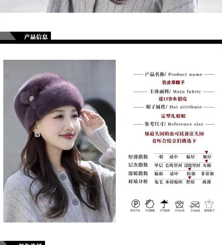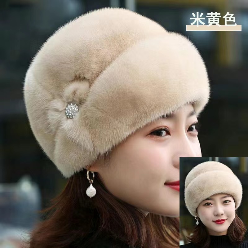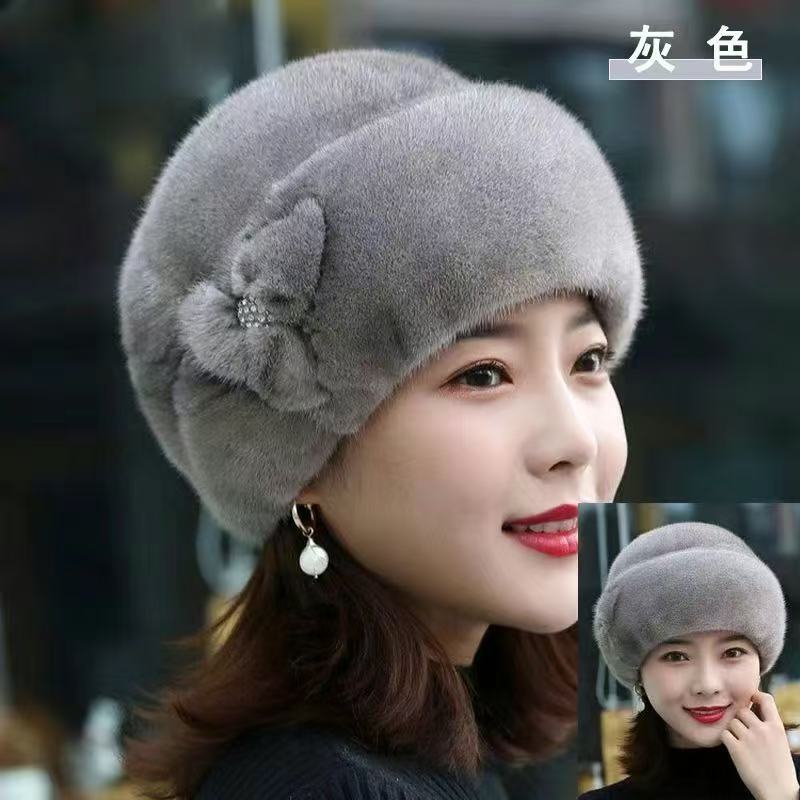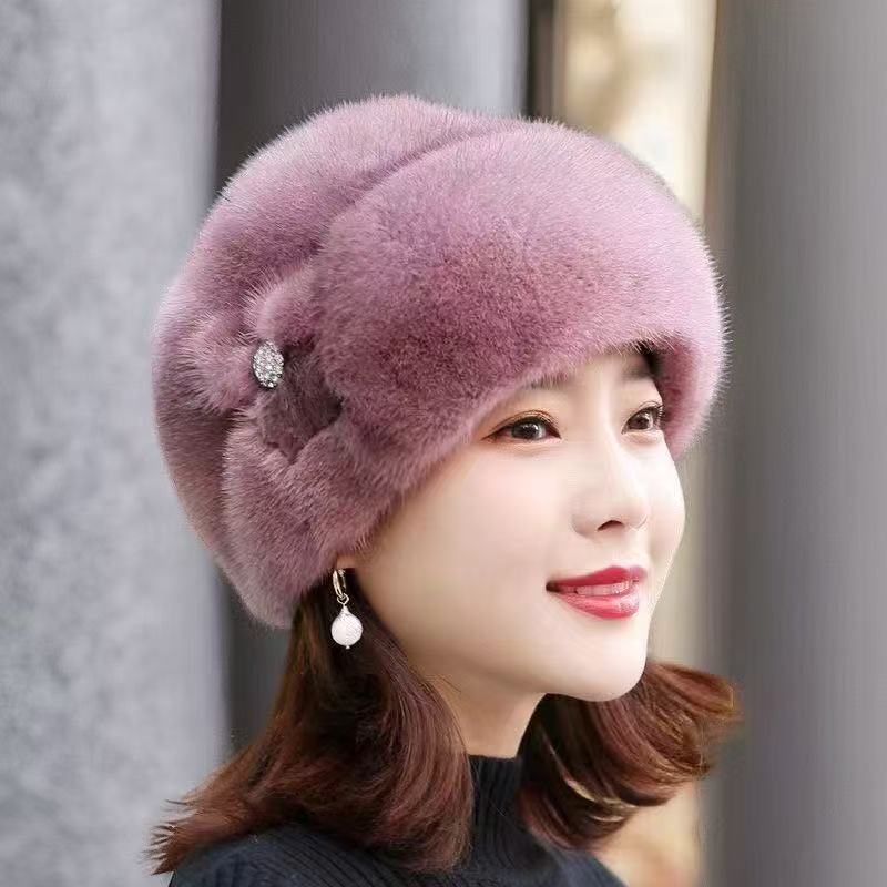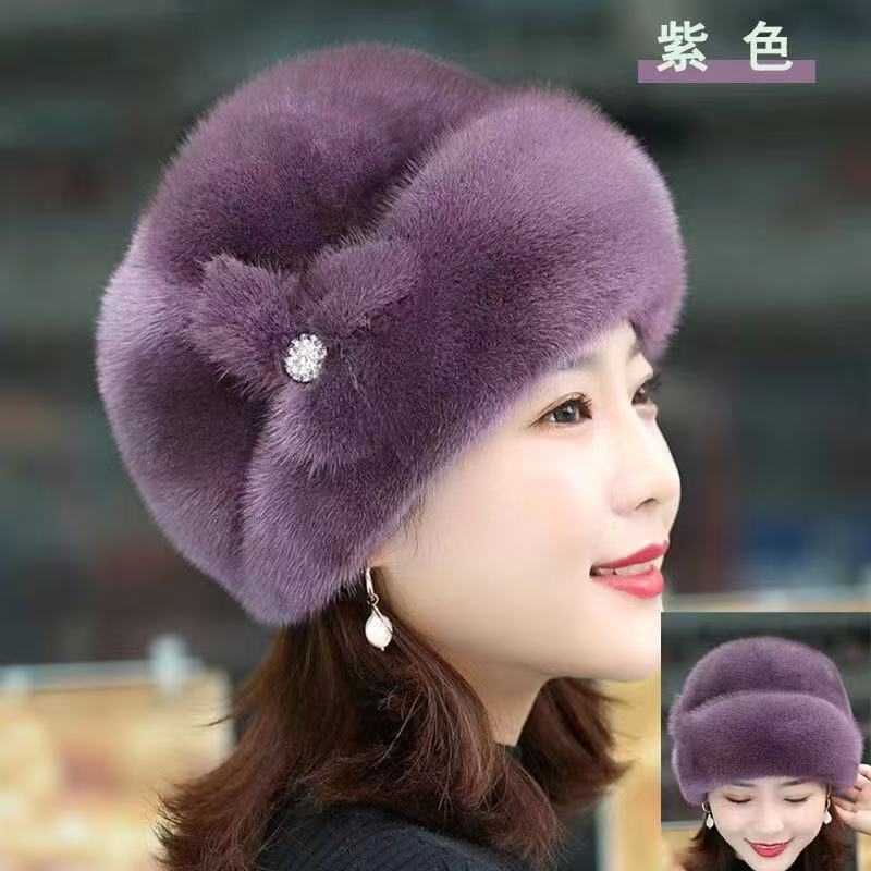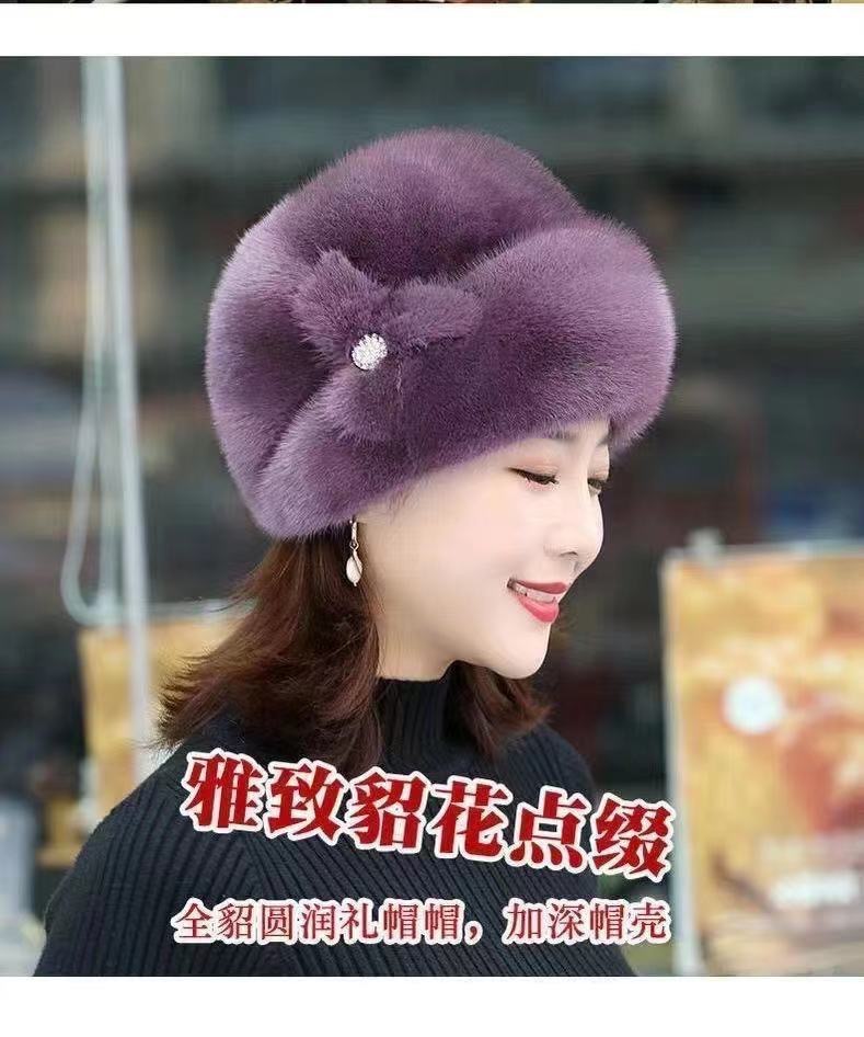 妈妈帽子女秋冬洋气中老年人仿水貂毛奶奶帽保暖时尚老太太包头帽
