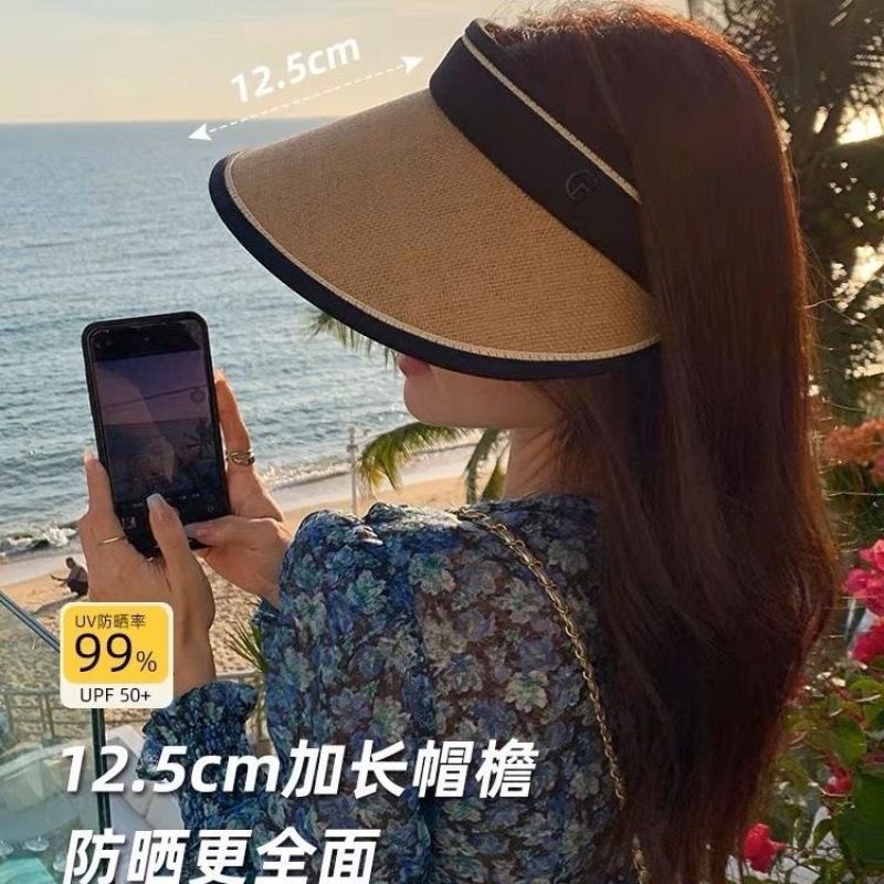 夏用大判つば広帽子、顔を小さく見せる日よけ帽子、空頂帽子、紫外線対策、韓国風日よけ帽子