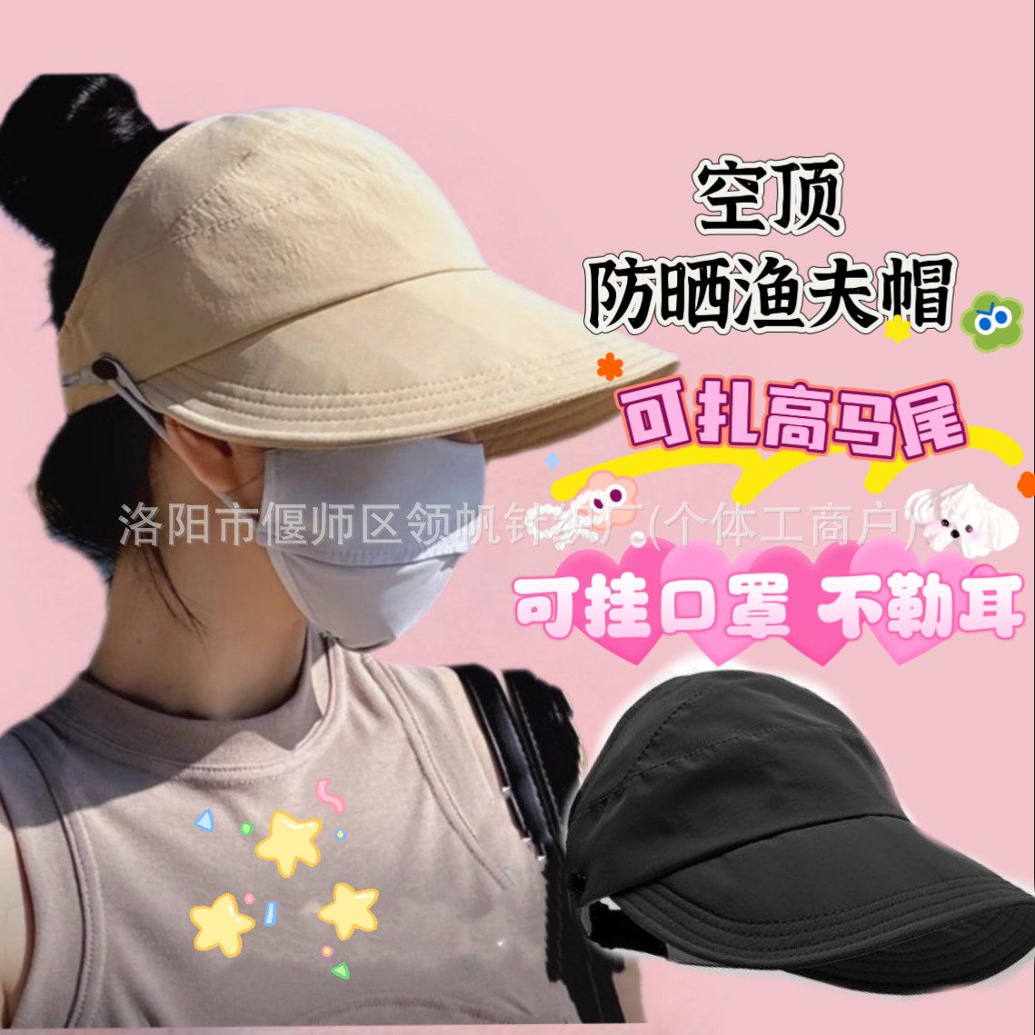 大きなつばの空頂日よけ帽子、女性用、春夏、取り外し可能なショール、首の保護、日焼け防止、サイクリング用、転倒防止、多用途
