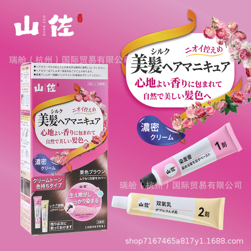 山佐染发膏栗棕流行色植物纯温和染发剂自然黑盖白发免漂自己染发