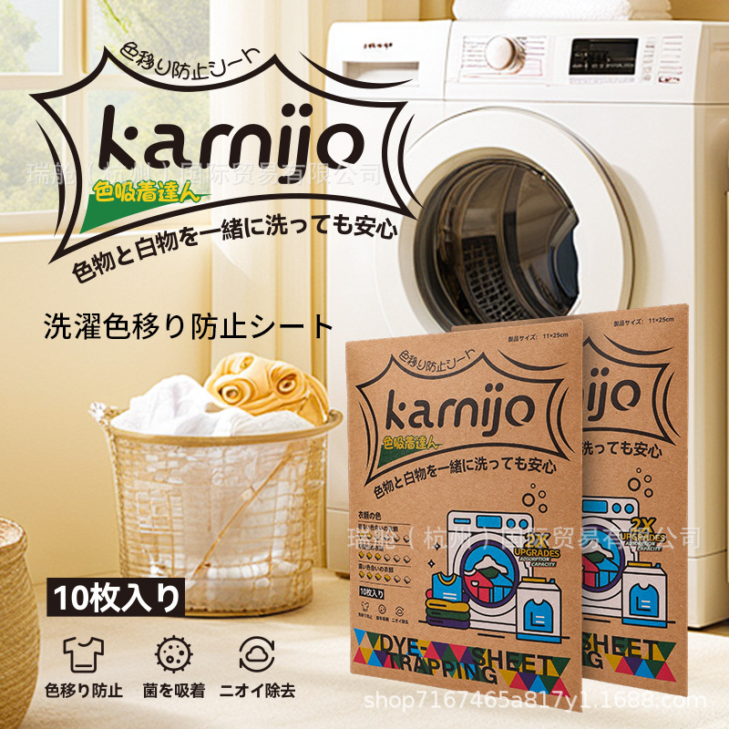 日本kamijo吸色片防串色不染色洗衣吸色纸家用洗衣机衣物防染色片