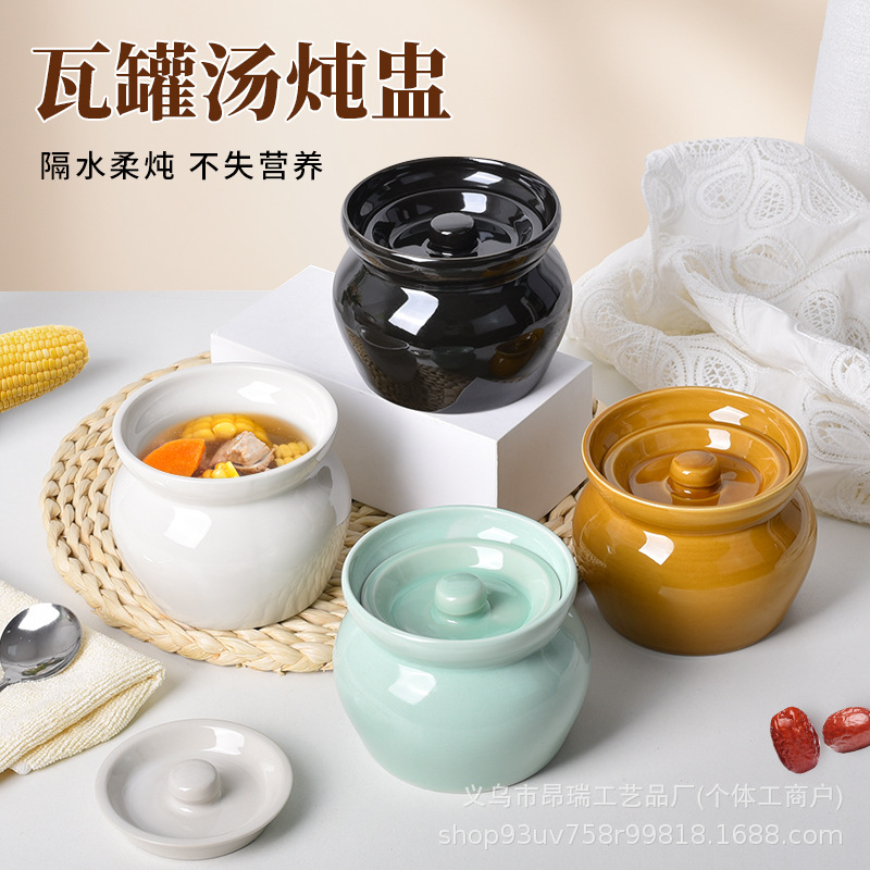 瓦罐煨汤炖盅家用商用隔水炖一人蒸蛋带盖炖罐沙县小吃陶瓷煲汤罐