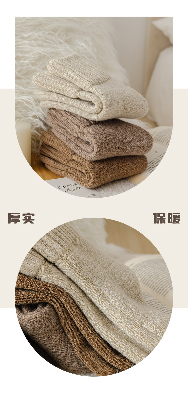 秋冬季加厚毛圈袜保暖百搭纯色中筒袜女复古粗口加绒雪地毛圈袜子