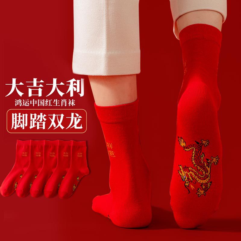諸及び紅靴下新年新作足踏み双龍本命年男女綿靴下大紅結婚祝い結婚新婦