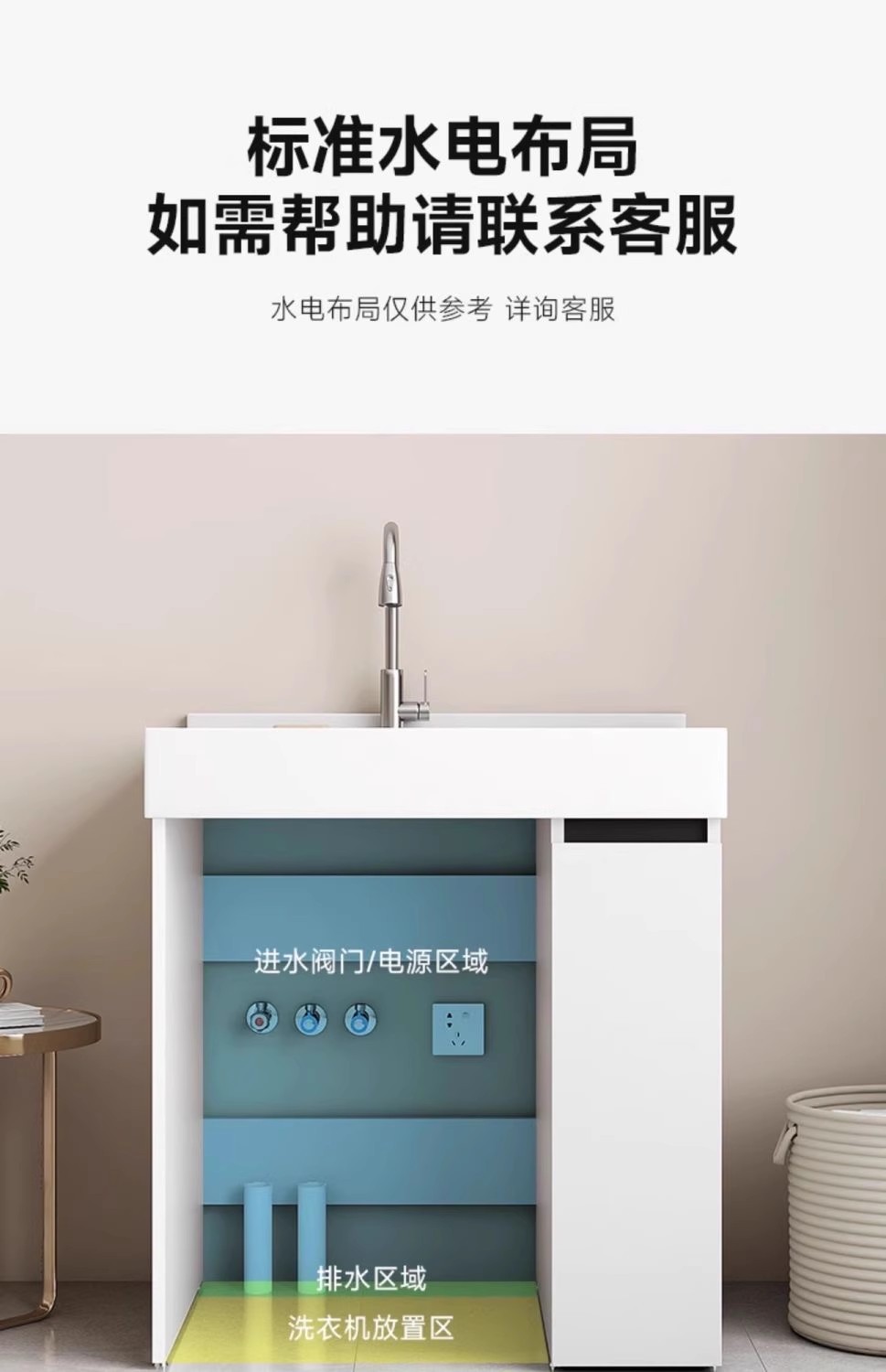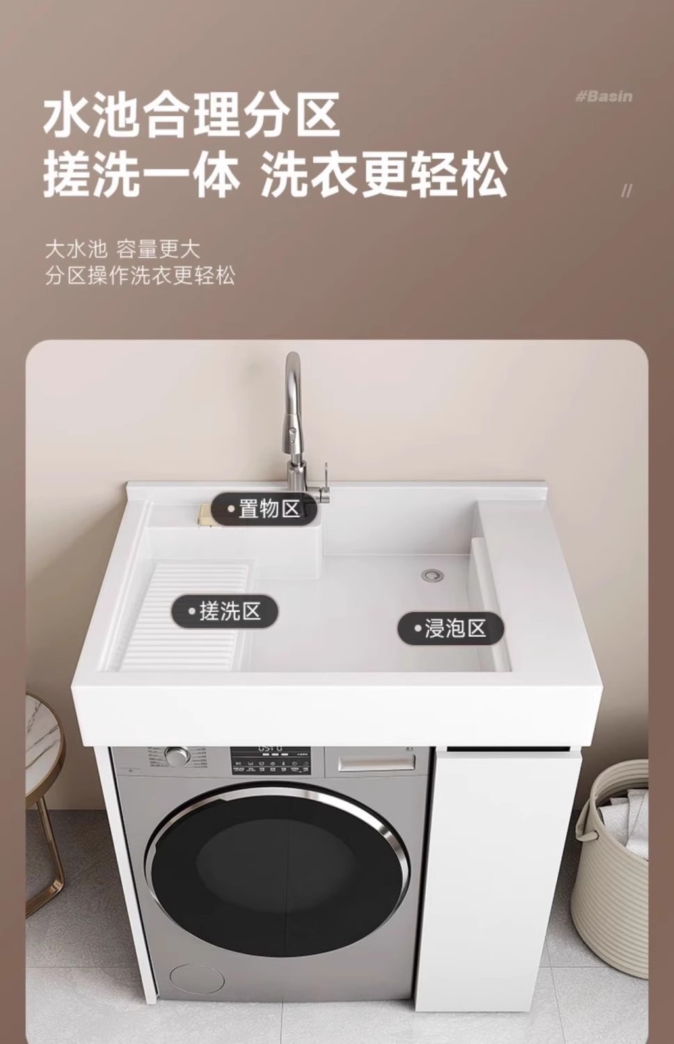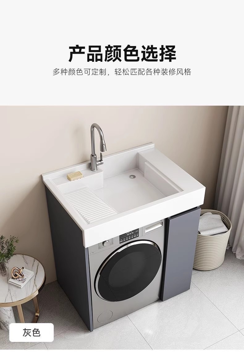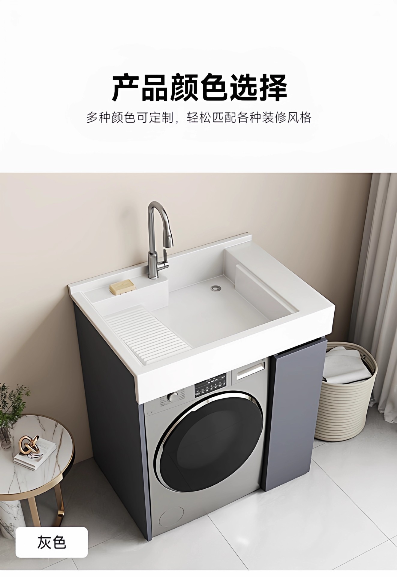 蜂窝铝阳台洗衣机一体柜组合滚筒洗衣机柜伴侣洗衣槽带搓板切角