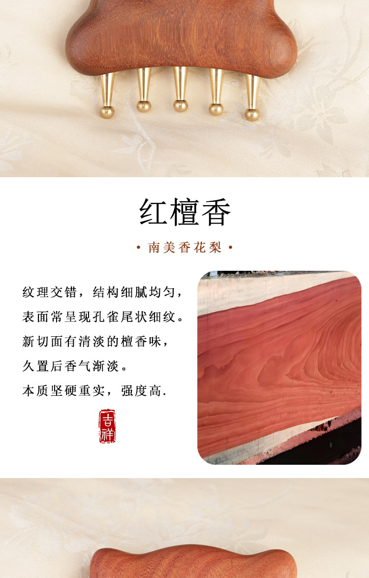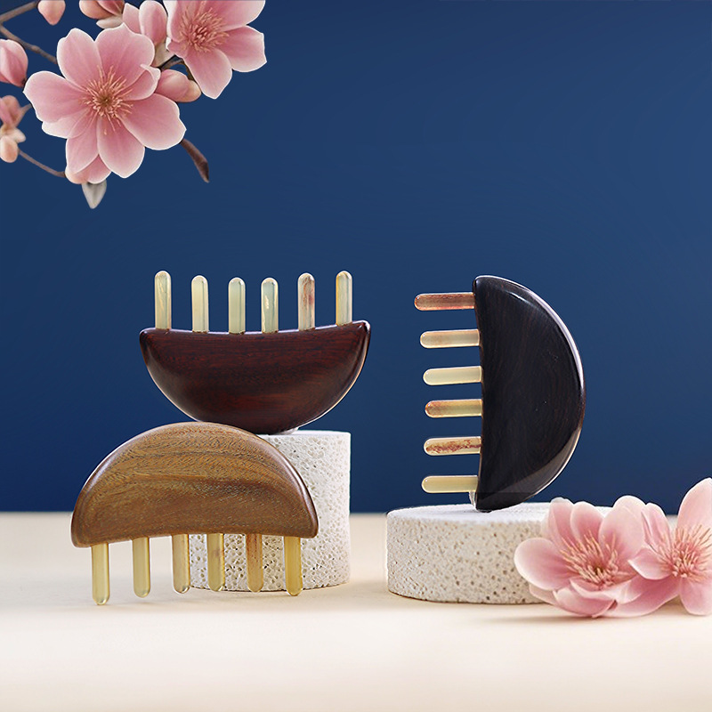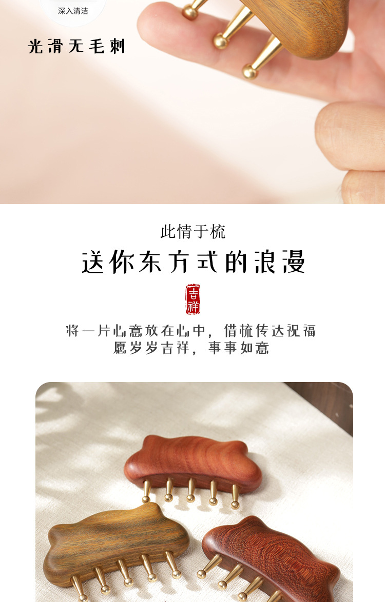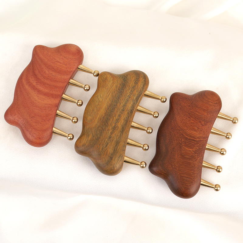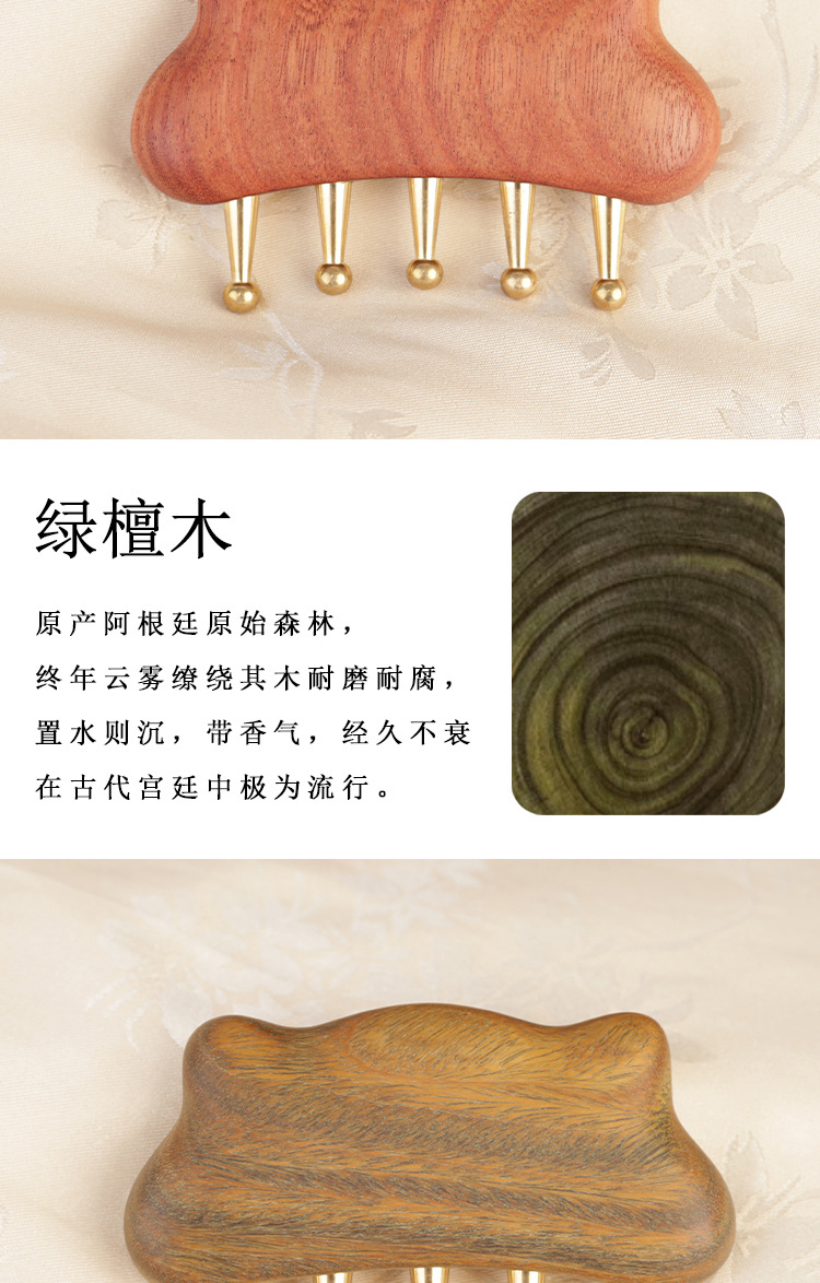 金白檀櫛、銅歯マッサージ櫛、頭経絡櫛、無垢材広歯櫛、ツボマッサージとスクレーピングツール