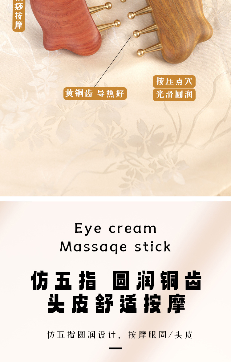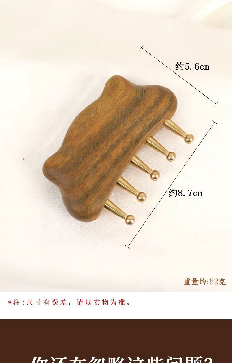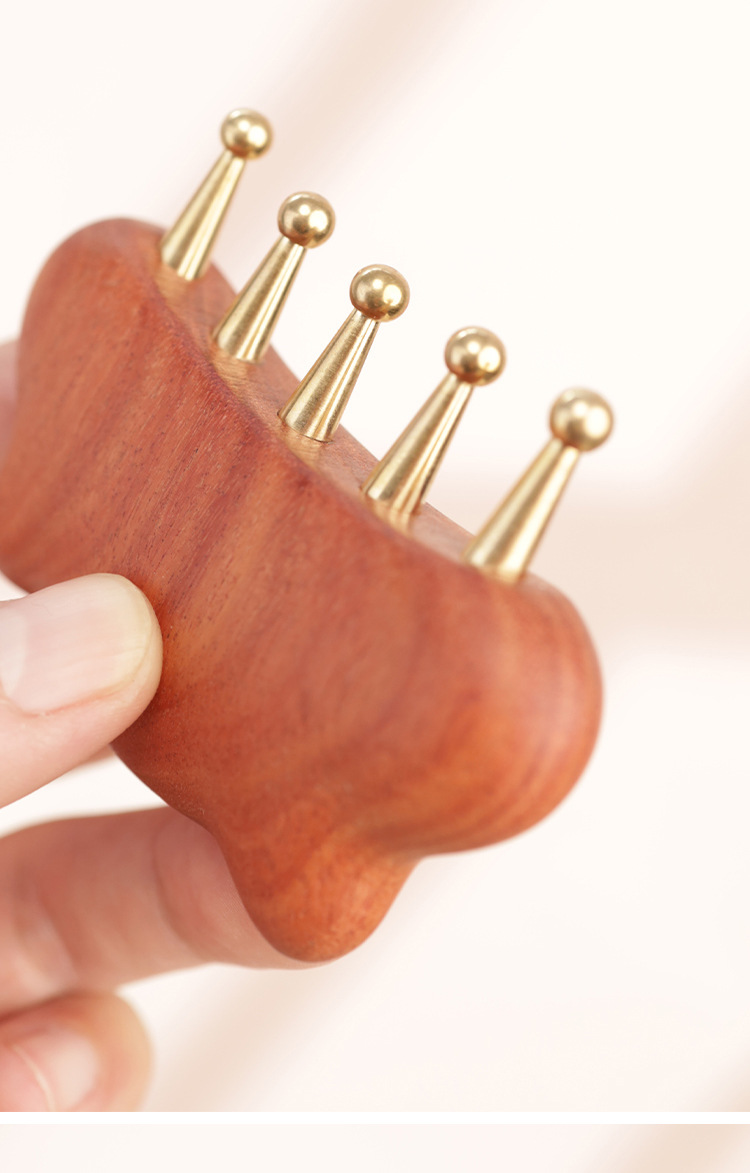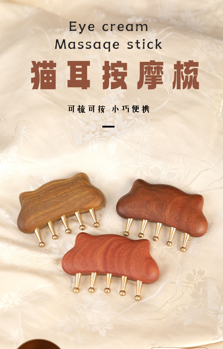 金丝檀铜齿猫耳五齿梳刮痧揉腹带脉刷头皮头部经络按摩梳子