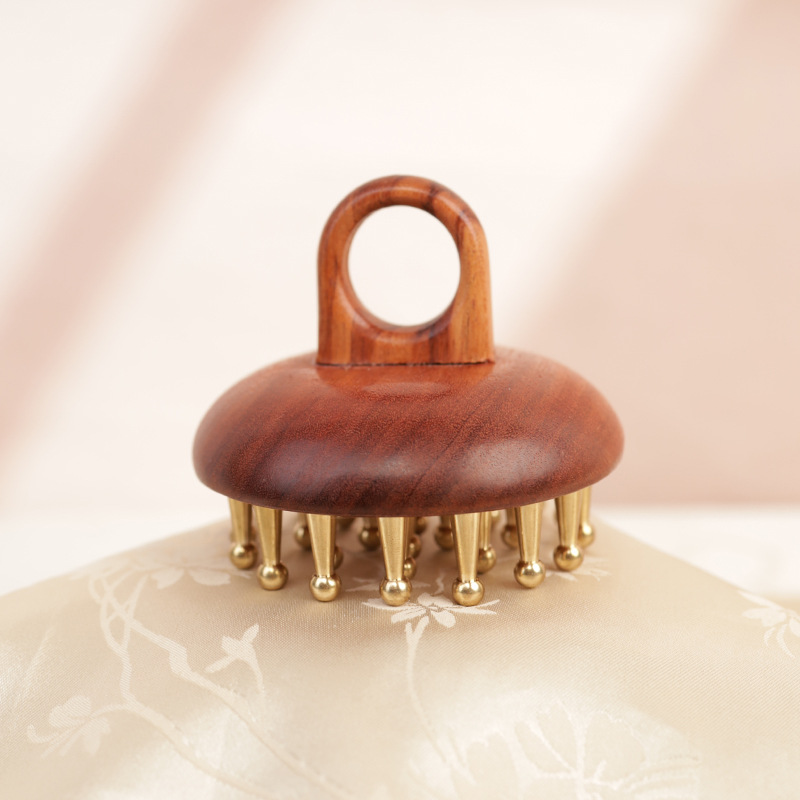 红檀香铜齿指环钉钉梳揉腹部腿部刮痧按摩工具家用便携按摩梳