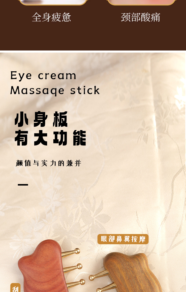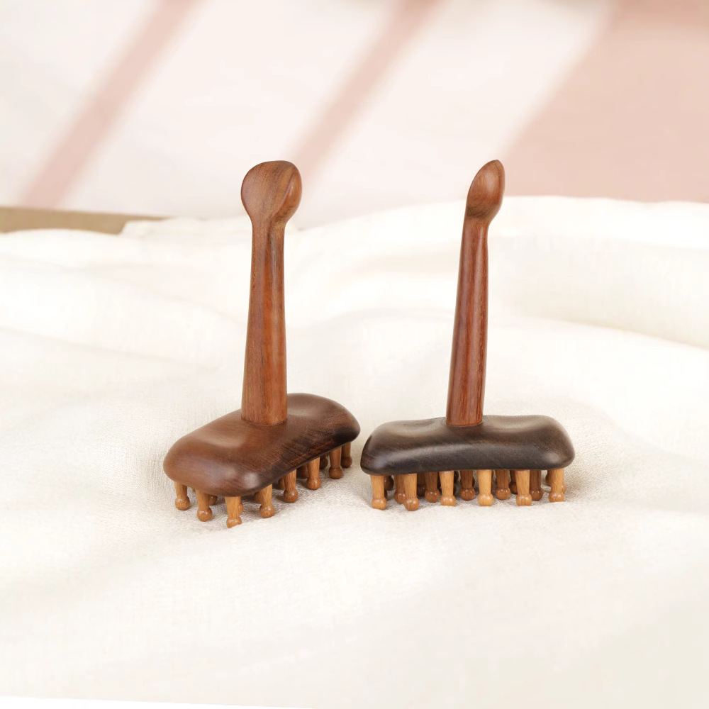 金丝檀木歪把经络刷头部刮痧棒全身通用刷肝经身体按摩刷实木无漆