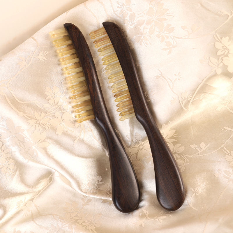 紫光檀羊角双排羊角齿按摩梳卷发多发长发经络刷檀木梳子男女通用