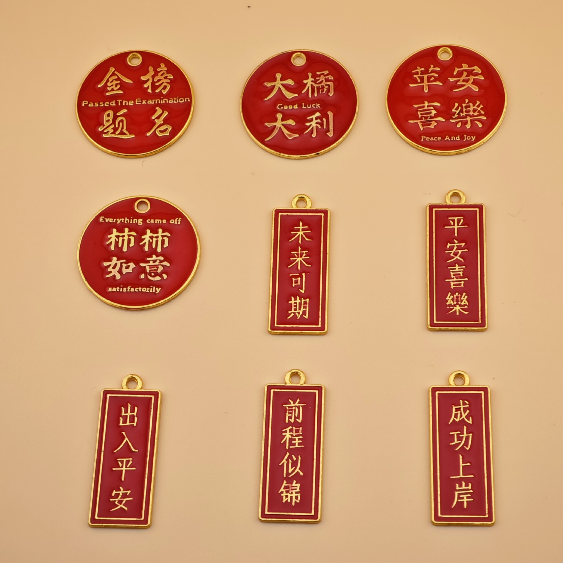 国風の美しい寓意金属文字成語DIY滴油合金アクセサリー自作鍵ペンダント