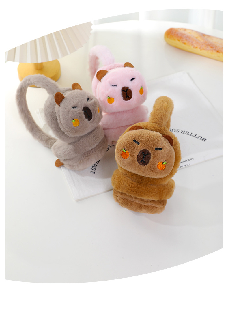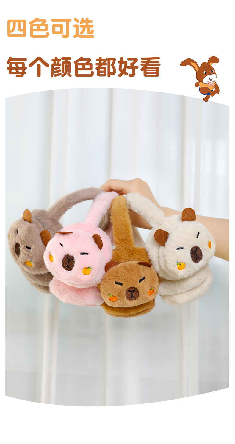 可爱卡通卡皮巴拉冬季保暖耳罩儿童耳捂子女生耳套暖包折叠毛绒RA