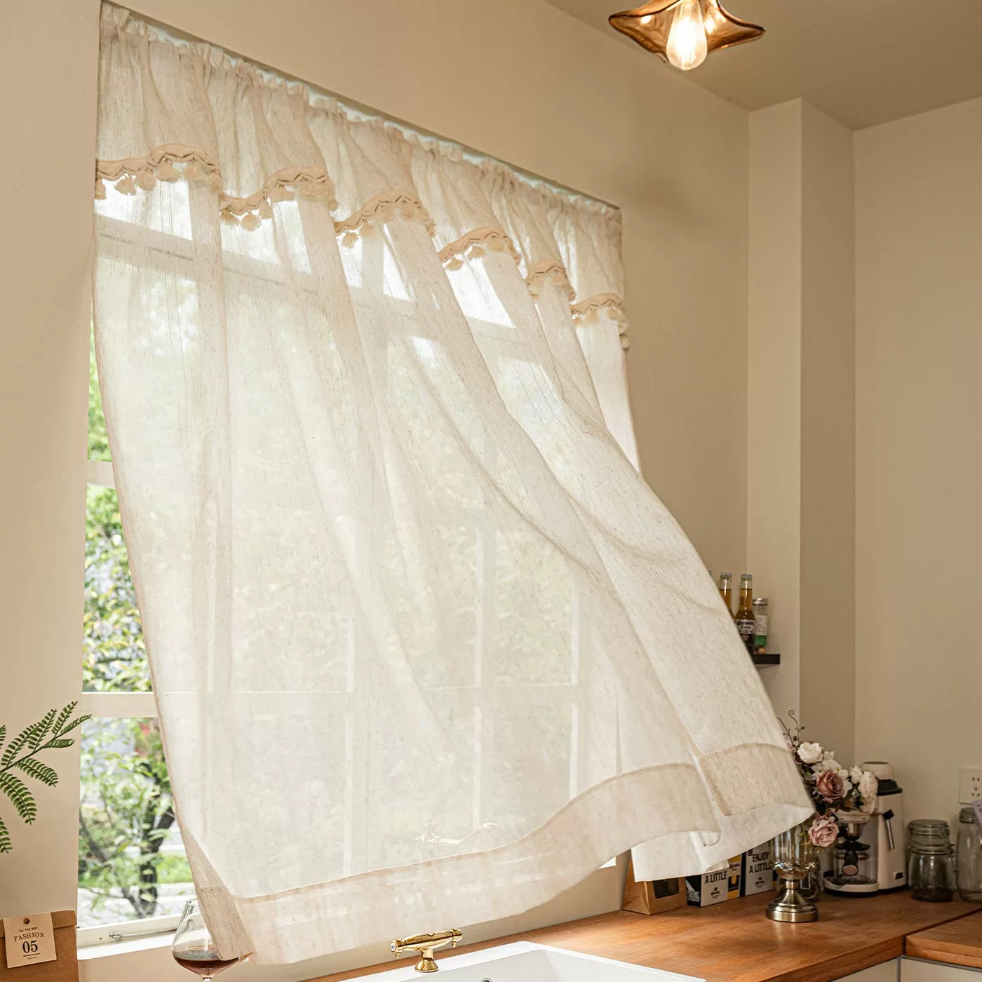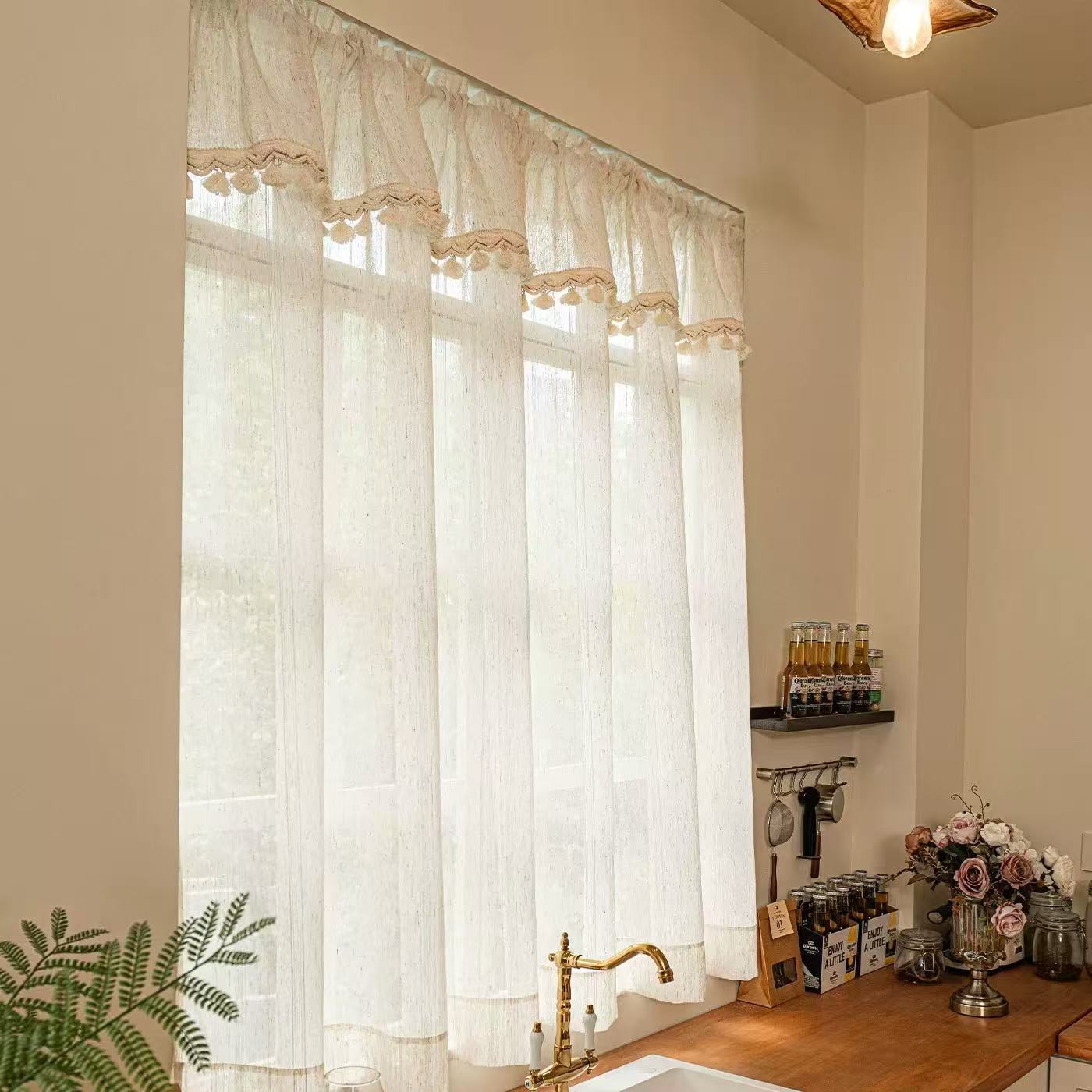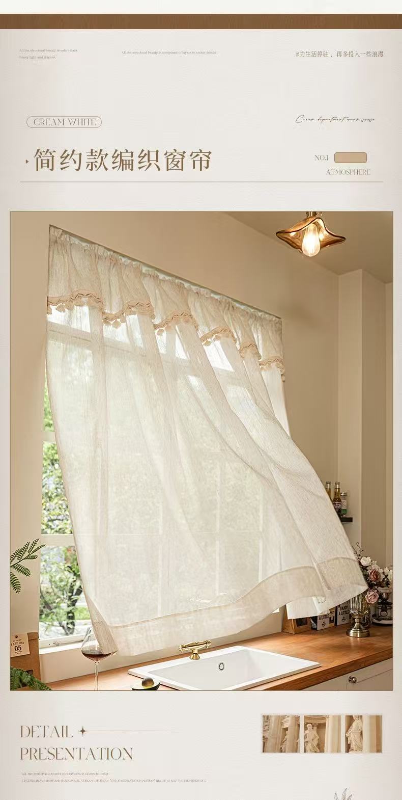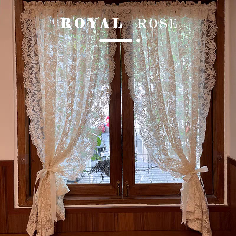 法式复古宫廷风蕾丝刺绣免打孔隔断半帘门帘奶油纱帘透光飘窗窗帘