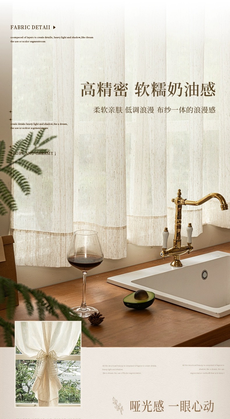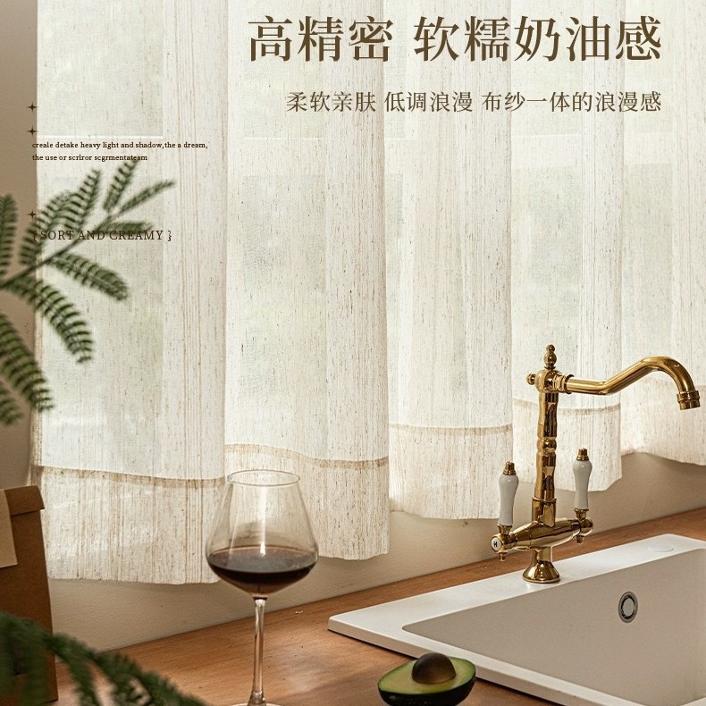跨境日式棉麻民宿奶油色窗帘成品透光不透人卧室客厅阳台遮光纱帘